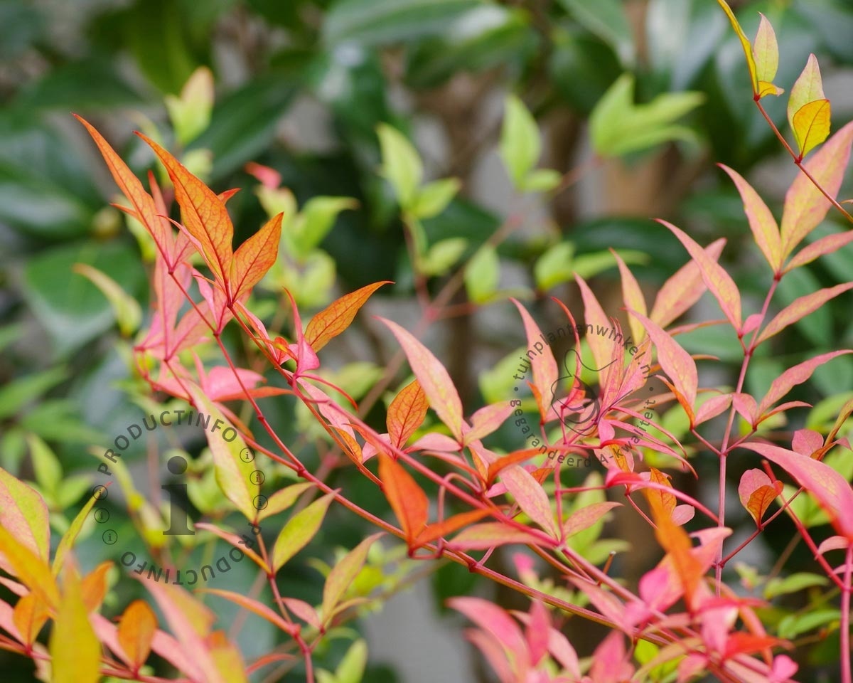 Nandina domestica 'Magical Sunrise' is een laagblijvende variant van de Nandina. De bladeren verkleuren naar warme, zalmoranje tinten in de herfst en winter. Bloeien doet deze cultivar nauwelijks; het is vooral de prachtige bladverkleuring, die ervoor zorgt dat deze tuinplant een waar sieraad is voor uw border. Schijnbamboe of Hemelse bamboe zijn de Nederlandse benamingen voor deze heester. De plant is niet eens nauw verwant aan bamboe maar wat betreft uiterlijk heeft ze er wel wat van weg. Laat u dus niet op het verkeerde been zetten.