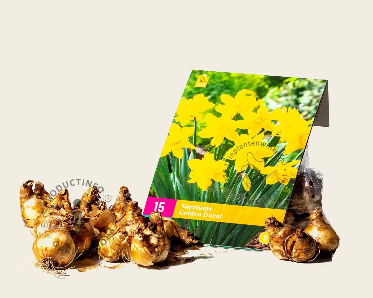 Bloembollen worden in de herfst en begin van de winter aangeplant. Let op dat u de Narcissus 'Golden Ducat' tijdig bestelt, want ze zijn maar een beperkte periode leverbaar. Plantdiepte van deze bloembol is ongeveer 15 cm onder de grond. (vanaf de onderkant van de bloembol gemeten). Om de bodem voldoende voedzaam te houden, en daarmee de bloei van de Narcissus 'Golden Ducat' te stimuleren, is het aan te raden om elk voorjaar op het moment dat ze opkomen voeding te geven. Dit kan in de vorm van Culterra, koemestkorrel of Biomest.