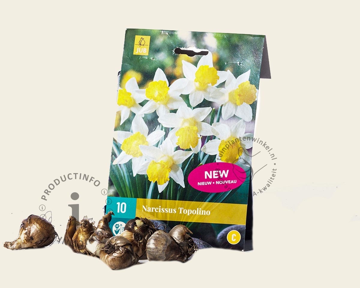 Bloembollen worden in de herfst en begin van de winter aangeplant. Let op dat u de Narcissus 'Topolino' tijdig bestelt, want ze zijn maar een beperkte periode leverbaar. Plantdiepte van deze bloembol is ongeveer 10 cm onder de grond. (vanaf de onderkant van de bloembol gemeten). Om de bodem voldoende voedzaam te houden, en daarmee de bloei van de Narcissus 'Topolino' te stimuleren, is het aan te raden om elk voorjaar op het moment dat ze opkomen voeding te geven. Dit kan in de vorm van Culterra, koemestkorrel of Biomest.