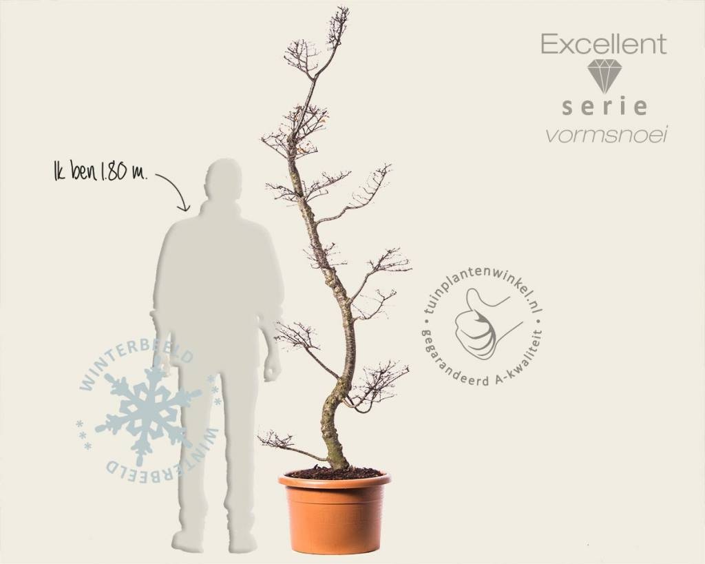 Door vele jaren snoeien en leiden volgens een vast plan, heeft de Nothofagus antarctica - bonsai - of Schijnbeuk uit de Excellent-serie zijn huidige vorm verkregen. Het woord bonsai betekent letterlijk bon (leven) - sai (schaal). Deze tuinplant heeft een slanke, open structuur met een grillig gevormde stam en takken met karakteristieke, witte lenticellen. De kleine blaadjes van de Schijnbeuk geuren bij het uitlopen prettig kruidig, een geur die aan kaneel of wierook doet denken. De smalle en ronde blaadjes zijn in de lente glanzend donkergroen en verkleuren in de herfst naar goudgeel. De Nothofagus antarctica - bonsai geeft de voorkeur aan een standplaats in de zon en is zeer geschikt als decoratieve solitair in uw tuin.