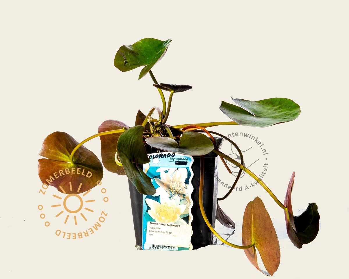 De bloemen van Nymphaea ‘Colorado’ steken ongeveer 10 cm boven het wateroppervlak uit en vallen hierdoor direct op. De oranje- en zalmkleurige bloembladeren steken prachtig af bij het gele hart en krijgen ongeveer een diameter van 12 cm. Deze Waterlelie zal niet woekeren en zorgt met zijn groene bladeren voor extra zuurstof en een schaduwrijke plek, die door veel dieren in het water wordt gewaardeerd.