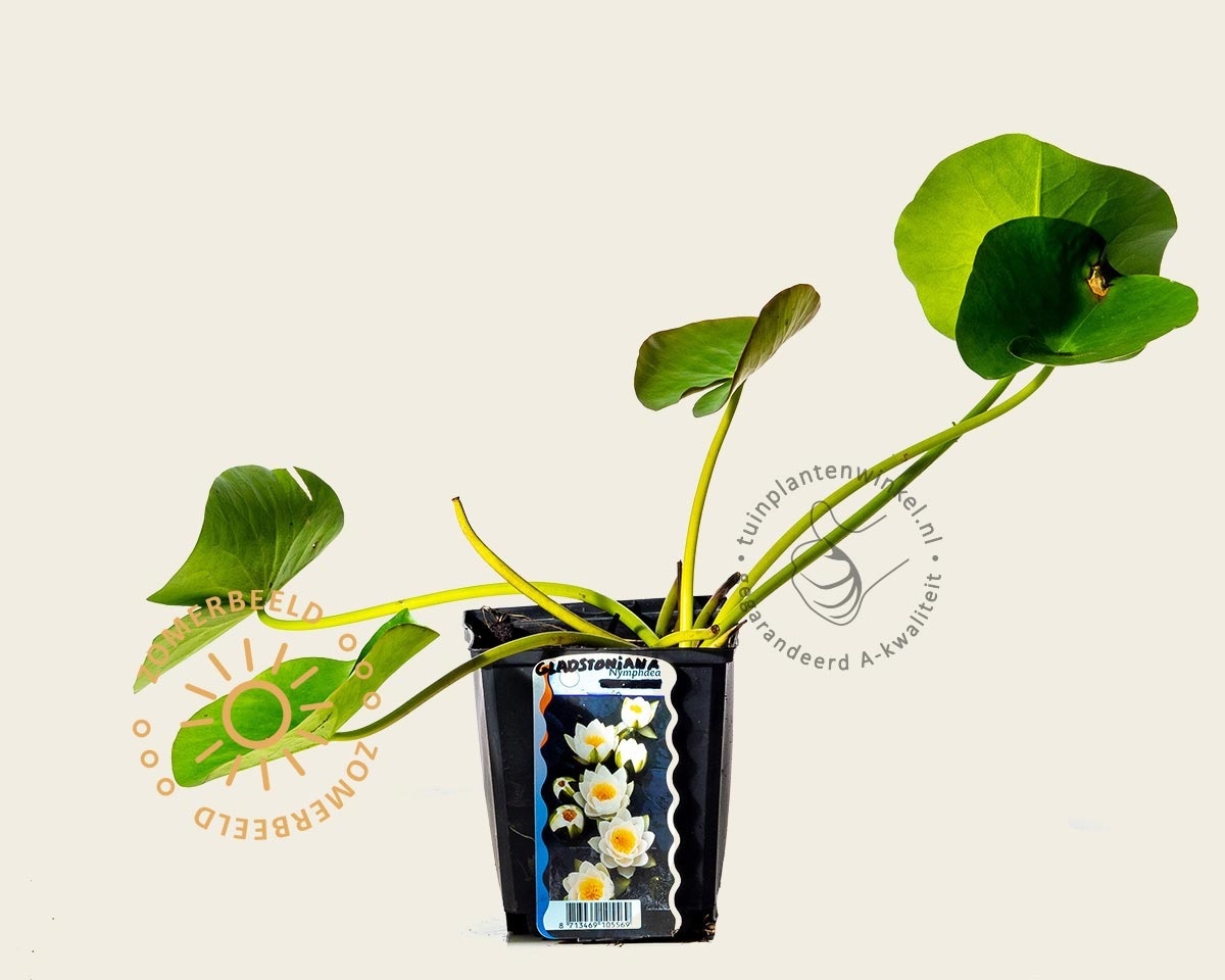 De Franse kunstschilder Claude Monet was niet voor niets gefascineerd door de prachtige waterlelies in zijn vijver. In de zomermaanden komen de bloemen tevoorschijn en trekken dan ook direct de aandacht. De bloemen van deze Nymphaea ‘Gladstoniana’ zijn wit, licht geurend en hebben een geel hart. Deze Waterlelie kan tot 120 centimeter onder de waterspiegel worden geplant en is daardoor geschikt om te plaatsen in diepere vijvers. Daarnaast woekert deze vijverplant niet.