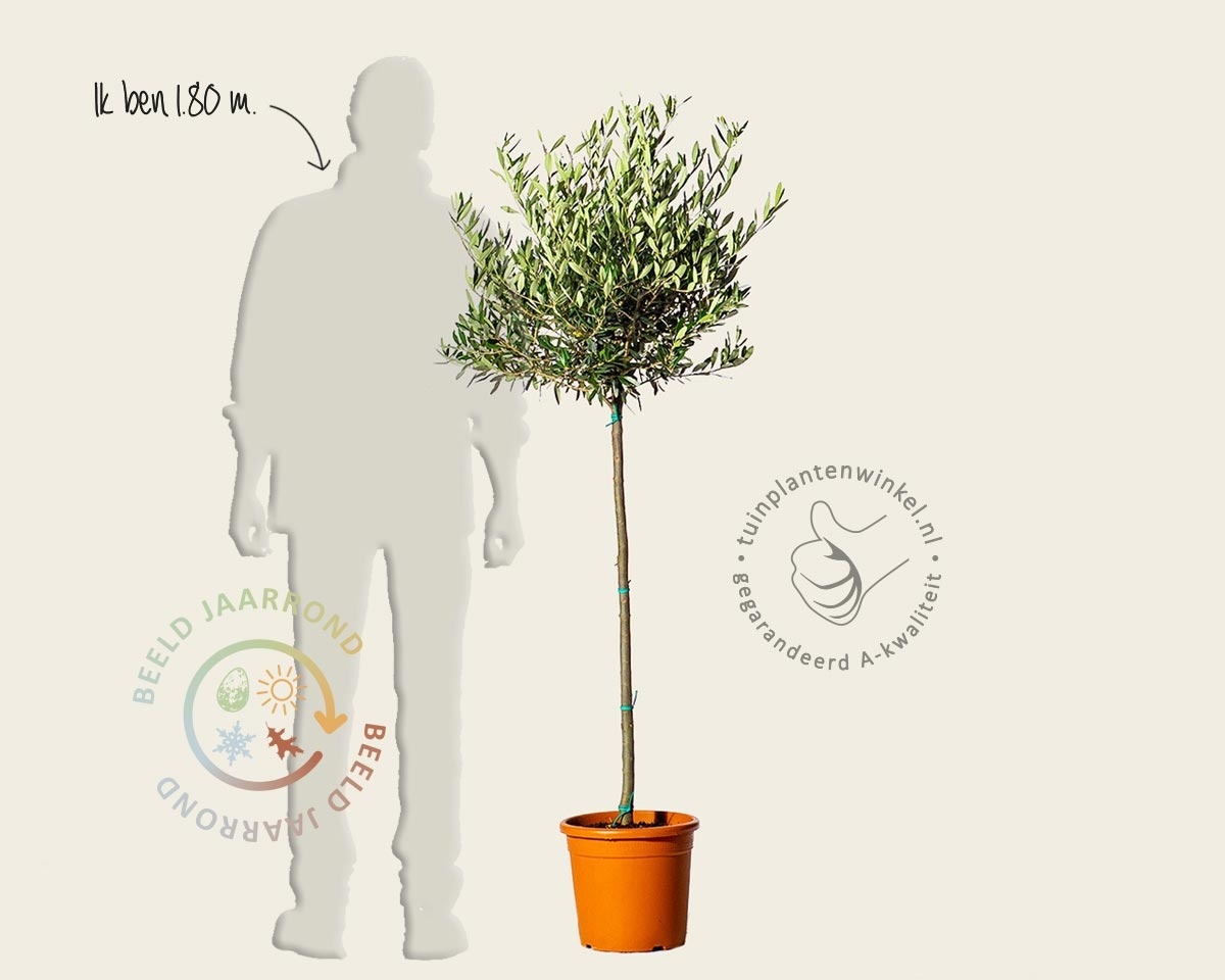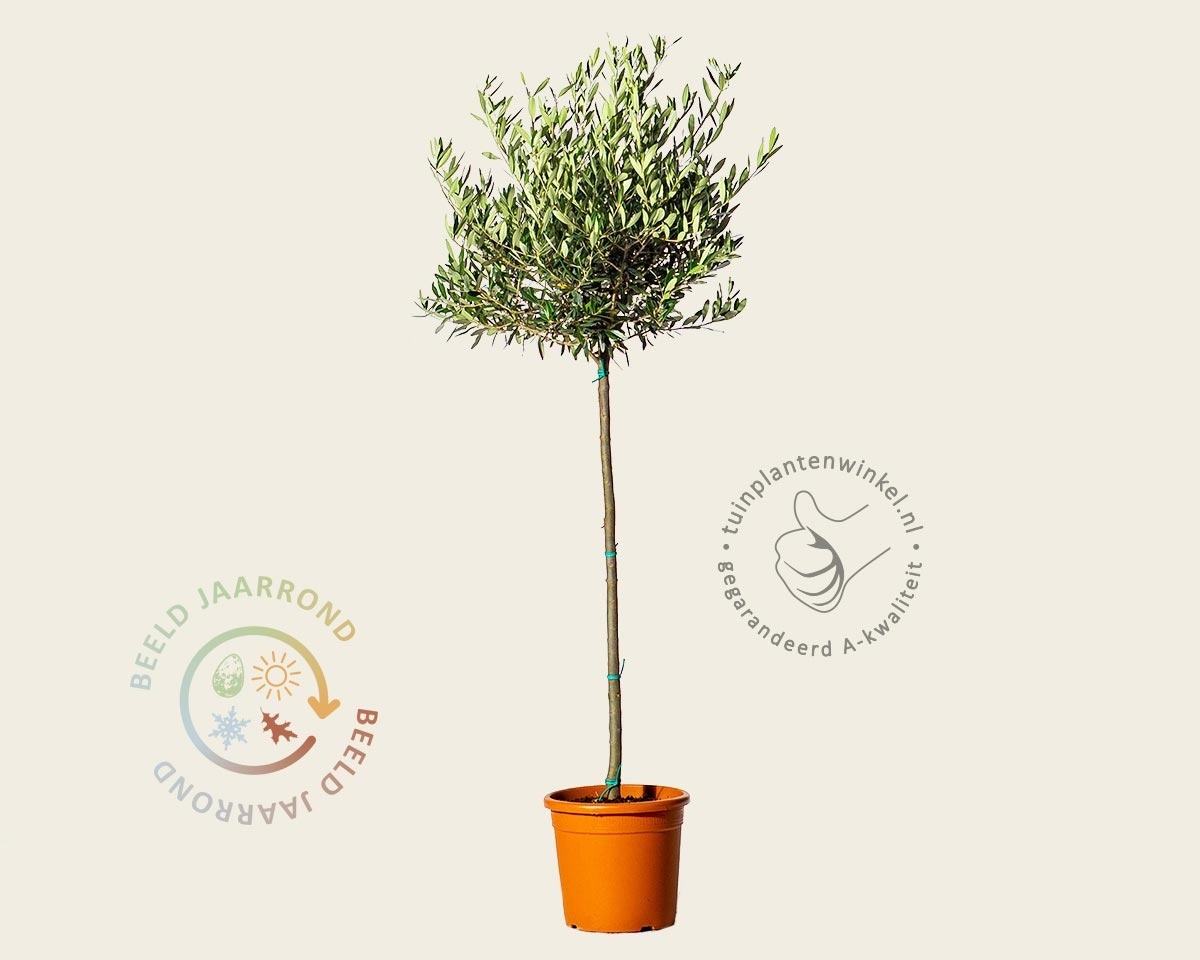 Olijfbomen komen met name in mediterrane gebieden voor. Met de Olea europaea haalt u deze vakantiesfeer naar uw eigen tuin. Een olijfboom behoudt zijn grijsgroene blad en heeft een grijs gekleurde stam. In juni en juli verschijnen onopvallende geel/witte bloemen die in trossen aan de olijfboom groeien.