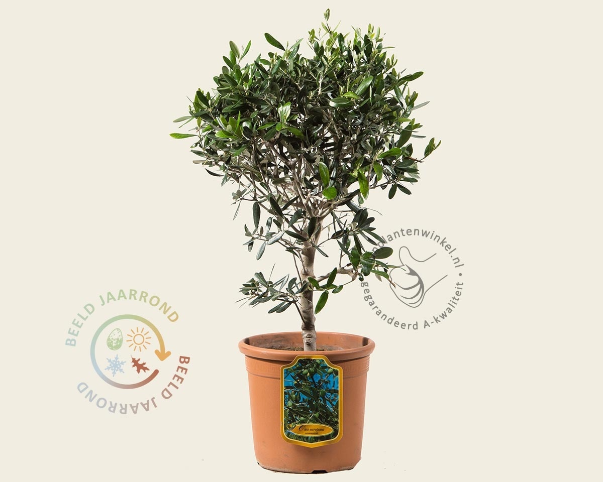 Op zoek naar een tuinplant met een mediterraanse sfeer? Dan is Olea europaea een goede keuze. Het blad is mooi grijsgroen van kleur. Een Olijf is bladhoudend, dus in de winter ook mooi om te zien. De bloemen zijn crème wit van kleur en ze groeien in trossen aan de olijfboom. Olijven die in een pot komen staan, kan men in de pot plaatsen met noppenfolie. Mooi voor op een terras of in een patiotuin.