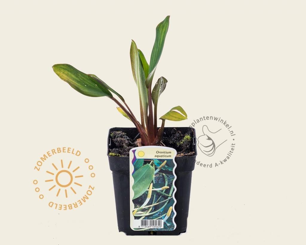 Orontium aquaticum is in Noord Amerika een inheemse moerasplant die graag in een leemachtige bodem staat. De bloemen die bestaan uit goudgele bloemkolven mogen, als deze zijn uitgebloeid, worden afgeknipt. De oude lelijke bladeren mogen ook worden weggehaald. De bladeren zijn in de zomermaanden met een waslaag bedekt. Vandaar ook de Engelse naam never wets. Deze planten hebben graag een standplaats in de volle zon.