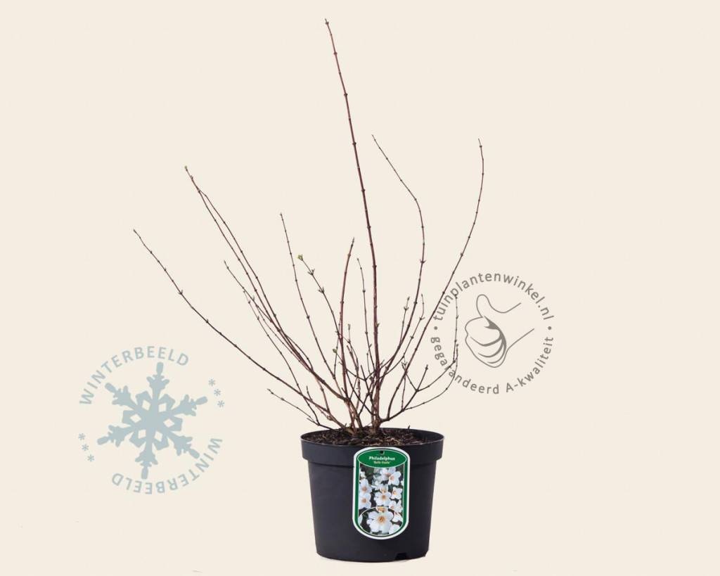 Philadelphus 'Belle Etoile' bloeit in mei/juni met vrij grote, crèmewitte, klokvormige, geurende bloemen, die bijen en vlinders aantrekken. Boerenjasmijn voldoet op iedere plaats in uw tuin en wordt zelfs als haag aangeplant. Een 5-tal cm dieper aanplanten bevordert de groei van nieuwe scheuten vanuit de basis. De tuinplant is goed winterhard, maar bladverliezend.