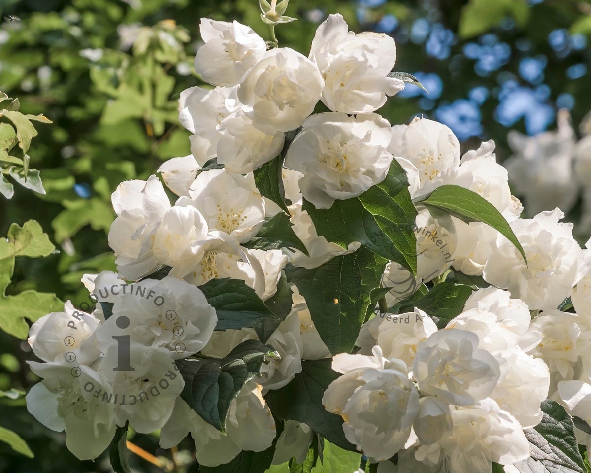 De naam van deze Boerenjasmijn verklapt al een beetje de reden waarvoor deze tuinplant een plekje in vele borders krijgt. In het late voorjaar kleurt de gehele plant prachtig wit door de vele dubbelbloemige, gevulde bloemen; inderdaad als een wit boeket..! De Philadelphus 'Bouquet Blanc' is een sterke bladverliezende heester.