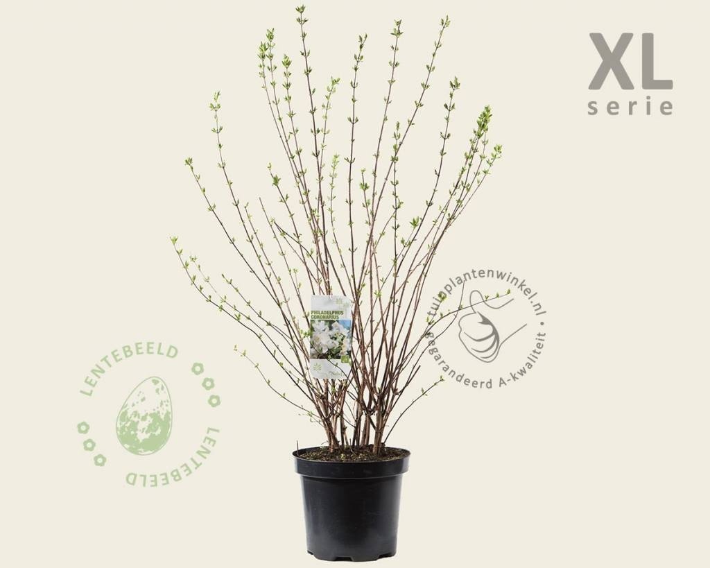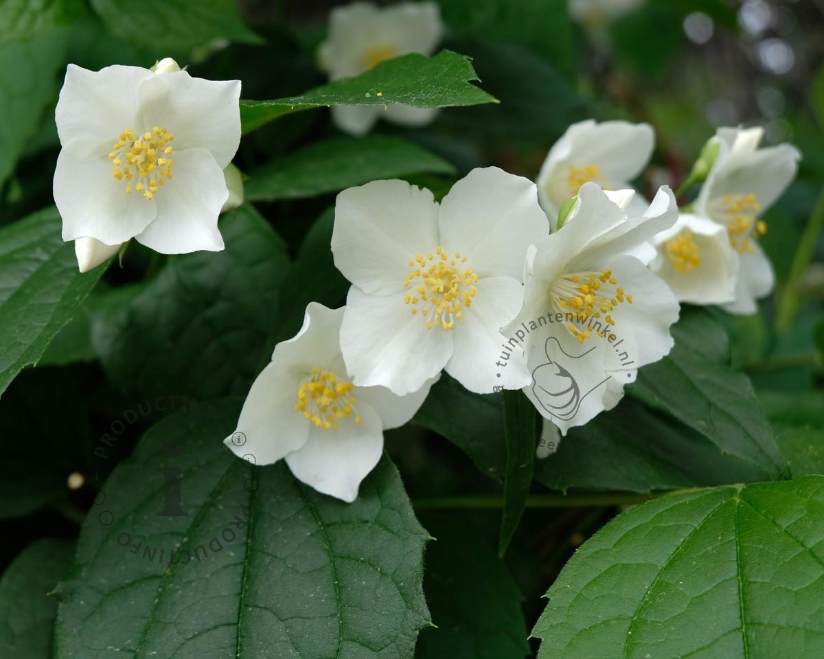 Philadelphus coronarius heeft een rechtopgaande bloeiwijze. Tijdens de bloei vormen zich trosjes witte bloemen, die heerlijk geuren en vlinders en bijen aantrekken. De Boerenjasmijn is afkomstig uit Zuid-Europa en Klein-Azië, maar er zijn ook Amerikaanse soorten. De tuinplant voldoet op iedere plaats in uw border en wordt zelfs als haag aangeplant. Ze is goed winterhard, maar bladverliezend.