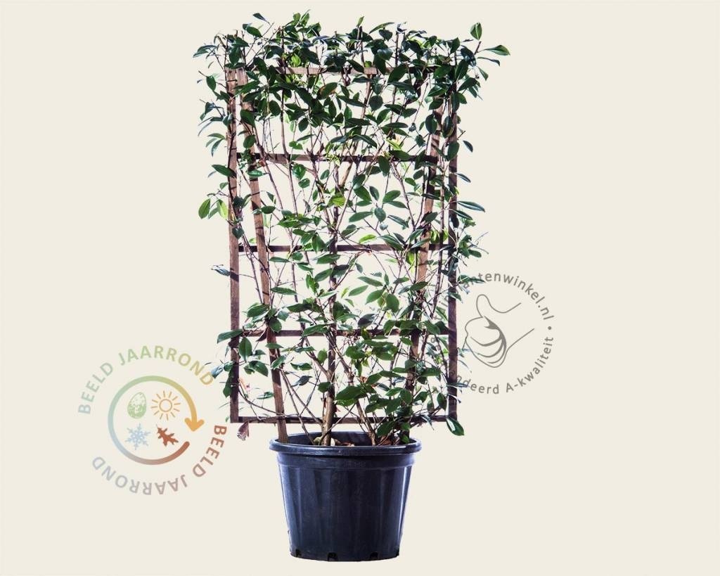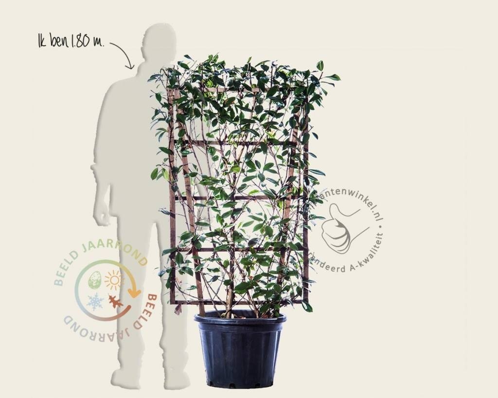 Photinia fraseri 'Red Robin' wordt in steeds meer vormen aangeboden. In deze rekvorm is het een makkelijke en mooie manier om een lage en smalle afscheiding in de tuin aan te brengen die direct dicht is. Ook in een bloempot op het terras of balkon kan deze Glansmispel goed tot zijn recht komen. Photinia fraseri 'Red Robin' is een sterke en wintergroene tuinplant. De grootste attractie van de Glansmispel is het roodgekleurde, nieuwe blad dat in het voorjaar (maar ook na elke snoeibeurt) aan deze tuinplant verschijnt. Later in het seizoen kleurt het rode blad terug naar glanzend groen. Daarnaast krijgt de Photinia fraseri 'Red Robin' in het voorjaar witgekleurde schermbloemen.