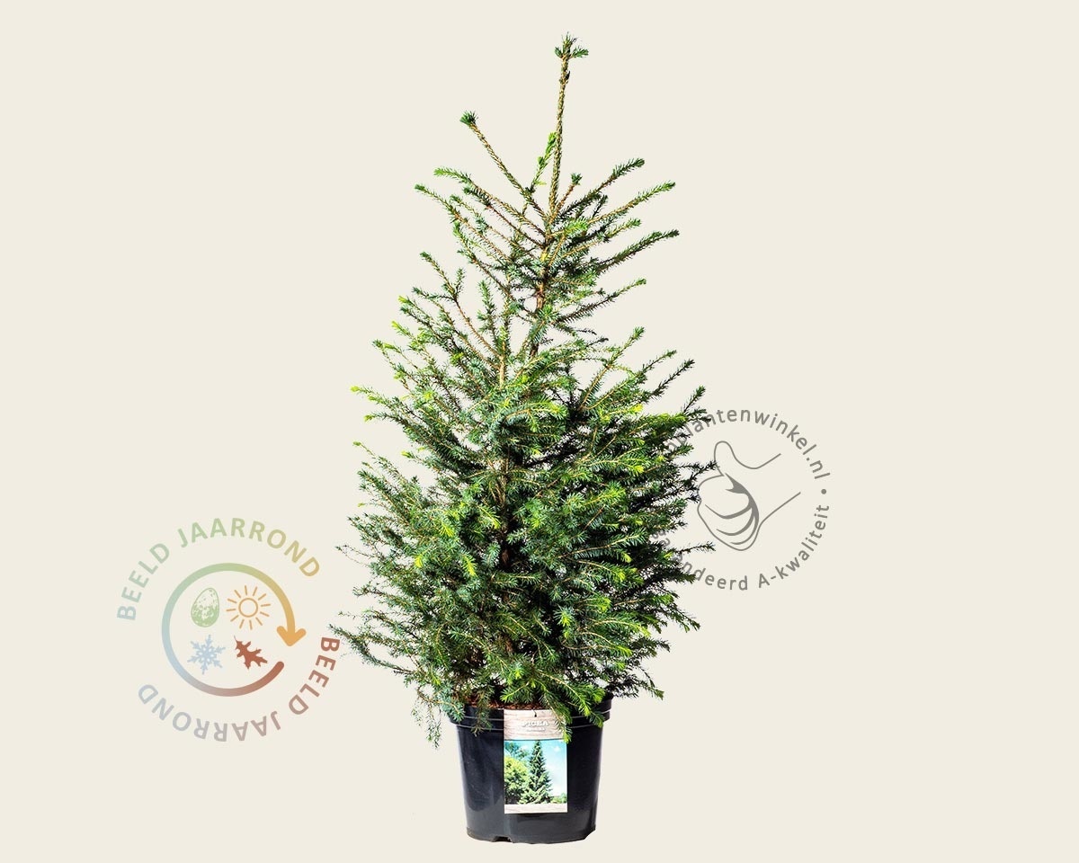 Deze Servische spar wordt geleverd in pot en kan jaarrond geplant worden. Snoeien is niet nodig en zelfs af te raden.
