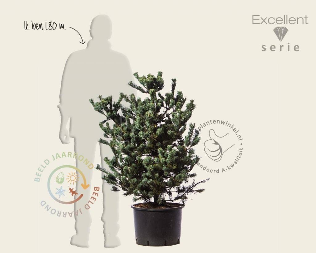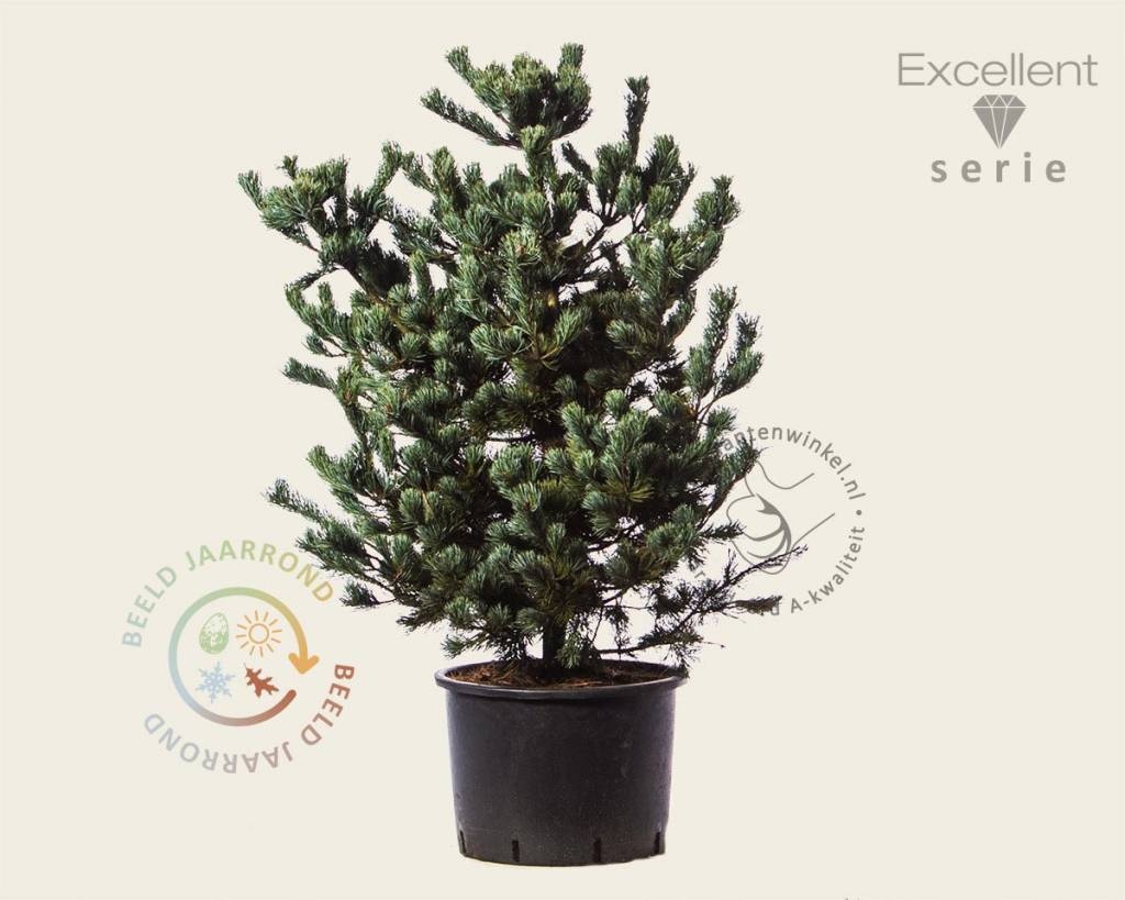 Pinus parviflora 'Negishi' uit de Excellent serie is een door de kweker zorgvuldig op vorm gekweekte den, die direct een mooie uitstraling heeft. Het is een groenblijvende tuinplant; zeer winterhard. Deze Japanse witte den groeit heel langzaam. Na 50 jaar is de maximale hoogte van 3-5 m bereikt! De groeiwijze is smal, kegelvomig en open. De naalden zijn 5-6 cm, grijsgroen en fijn van structuur. Wanneer er nieuwe naalden verschijnen, vallen er oude naalden af. De dennenappels die in het najaar aan de den hangen, hebben weinig schubben en zijn eivormig. De grijze schors is glad. Deze variant van de Pinus parviflora staat heel mooi in elke tuin; kleine of grote tuin, tuin in Japanse stijl of rotstuin.