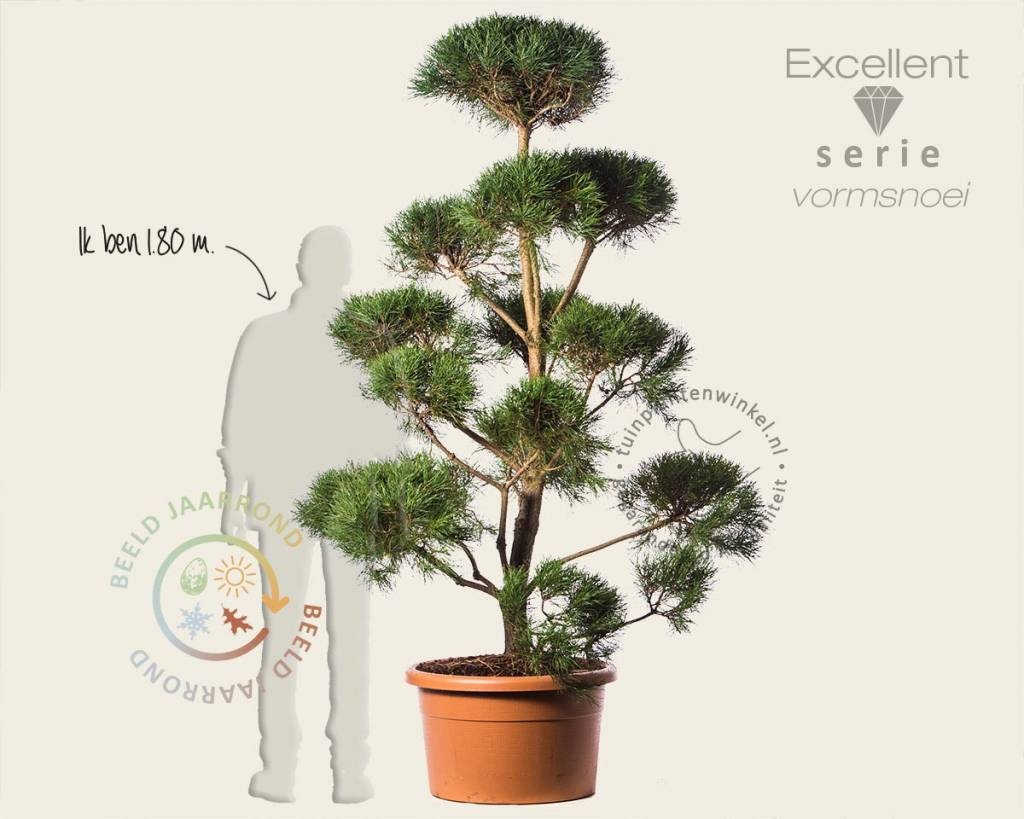 Van huis uit is Pinus sylvestris een den die niet snel groeit, vooral in de eerste jaren. In de Excellent-serie wordt de Grove den speciaal op bonsai-vorm gekweekt. Dat gebeurt bij de kweker door zeer regelmatig en zorgvuldig leiden en snoeien van de takken. De gemodelleerde vorm die de tuinplant dan krijgt, staat daarmee vast. De Pinus sylvestris -bonsai verdient een prominente plaats in de border. Met zijn opvallende oranjebruine schors, grijsbruine stam, groen-geelgrijze takjes en blauwgroene naalden zal de Grove den - bonsai - Excellent een blikvanger in de tuin zijn.