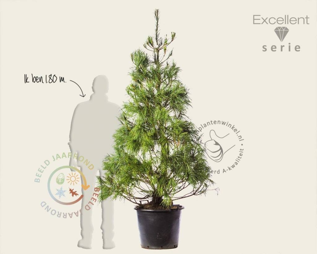 Pinus wallichiana uit de Excellent-serie is een zorgvuldig gekweekte den. Deze dennensoort is een gewilde boom in de houtindustrie (grenenhout). De boom die wij leveren wordt niet hoger dan 10 m en groeit breed uit. Daarom is de Tranenden meer geschikt voor een wat grotere tuin. Opvallend zijn de lange grijsblauwe naalden van soms wel 20 cm. Die hangen naar beneden evenals de horizontale takken. In juni verschijnen er nieuwe dennenappels. Pinus wallichiana is een boom met een chique uitstraling.
