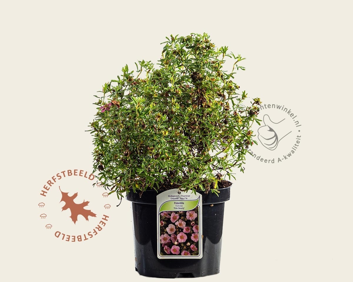 Potentilla fruticosa ‘Pink Beauty’ of Struikganzerik is een rijkbloeiende tuinplant met kleine, roze bloemen van mei tot diep in augustus. Potentilla wijst naar medicinale krachten, die vroeger aan de tuinplant werden toegedicht; het waarom is nu niet meer bekend. Tuinplantenwinkel.nl heeft behalve de 'Pink Beauty’ ook nog andere variëteiten, zoals de ‘Abbotswood’: witbloeiend, de ‘Kobolt’: geel bloeiend en de ‘Red Ace’ met rode bloemen. Struikganzerik wordt uiteindelijk ongeveer 50 cm hoog en wordt veel toegepast als gesloten vak- of haagbeplanting.