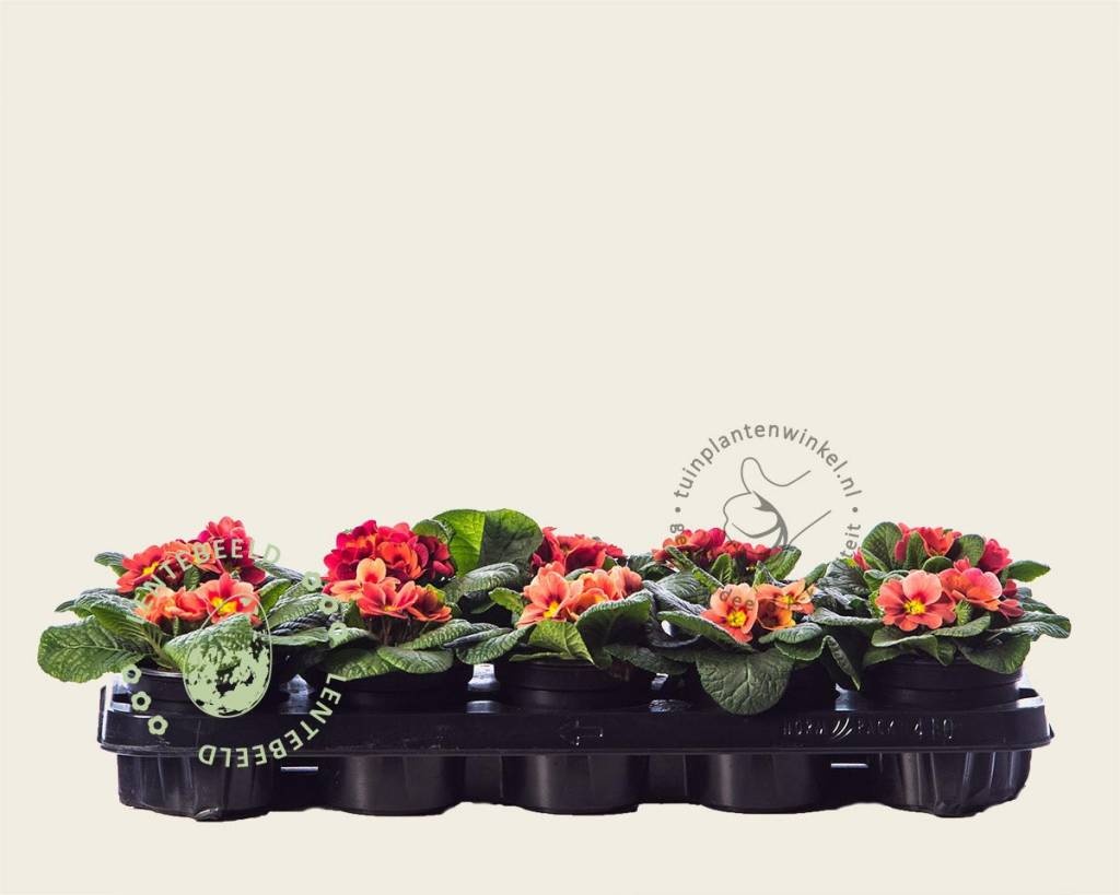 De sleutelbloem is een plant met een lange historie. De naam heeft de plant te danken aan een legende over Sint Petrus. De Latijnse naam Primula verwijst naar 'Eersteling' en verwijst naar de bloeitijd van de plant. De primula is over het algemeen een van de eerste voorjaarsbloeiers. Deze variëteit bloeit met grote steenrode bloemen en een geel-oranje hart. Deze sleutelbloem is een vaste plant, maar wordt vaker gebruikt als eenjarige plant in het voorjaar. U kunt de plant na de bloei echter goed in de tuin planten. In de halfschaduw voelen deze planten zich het beste thuis.