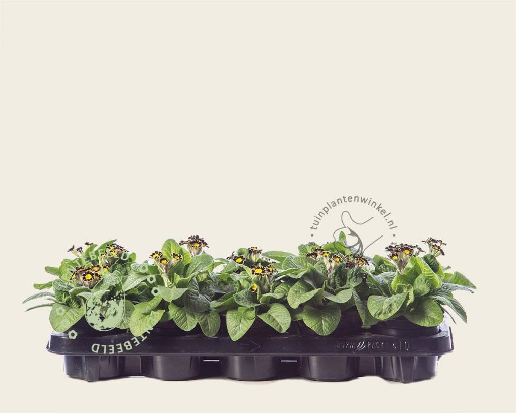De sleutelbloem is een plant met een lange historie. De naam heeft de plant te danken aan een legende over Sint Petrus. De Latijnse naam Primula verwijst naar 'Eersteling' en verwijst naar de bloeitijd van de plant. De primula is over het algemeen een van de eerste voorjaarsbloeiers. Deze variëteit bloeit met kleine donkerkleurige bloemen en een smalle gele rand om de bloembladeren. Deze sleutelbloem is een vaste plant, maar wordt vaker gebruikt als eenjarige plant in het voorjaar. U kunt de plant na de bloei echter goed in de tuin planten. In de halfschaduw voelen deze planten zich het beste thuis.