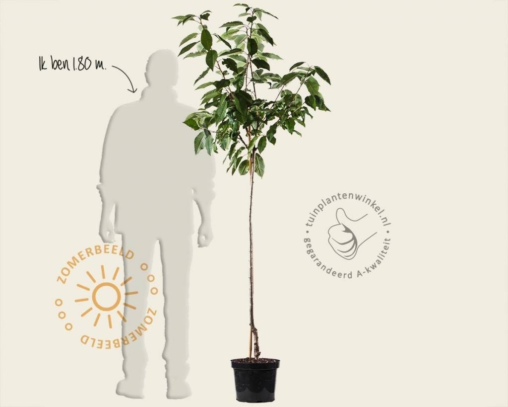 Prunus avium 'Van' zal uiteindelijk uitgroeien tot een flinke boom. Geef hem de ruimte die hij nodig heeft om zich te ontwikkelen. De tuinplant is zelfbestuivend en heeft dus geen andere kersenbomen nodig om voldoende vrucht te kunnen dragen. Prunus avium 'Van' heeft in juli lekkere, rode vruchten. Ook leuk om te gebruiken in een fruit- of groentetuin.