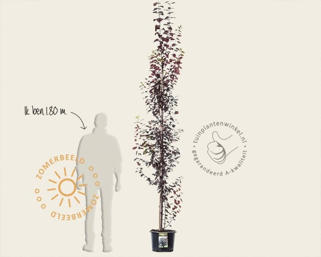 De Kerspruim Prunus cerasifera 'Nigra' hoeft niet zoveel gesnoeid te worden. Knip indien gewenst in de zomer (juli) oude, uitgedroogde takken weg en verwijder ook uitschieters lager op de stam. Geef hem de ruimte die hij nodig heeft, want snoeien van de tuinplant geeft vaak flinke groei van waterlot (jonge twijgen, die op de oude takken recht omhoog uitschieten). Dit ziet er niet mooi uit. Zonder veel snoeiwerk is het een aandachttrekkende boom voor de wat grotere tuin. Strooi ieder jaar bij de plantvoet wat organische of langdurig werkende meststof. Net als de meeste bomen verliest de Kerspruim zijn blad in de winter. De boom wordt geleverd in een pot; hierdoor kunt u hem het hele jaar door planten, in tegenstelling tot een boom met blote wortel of kluit.