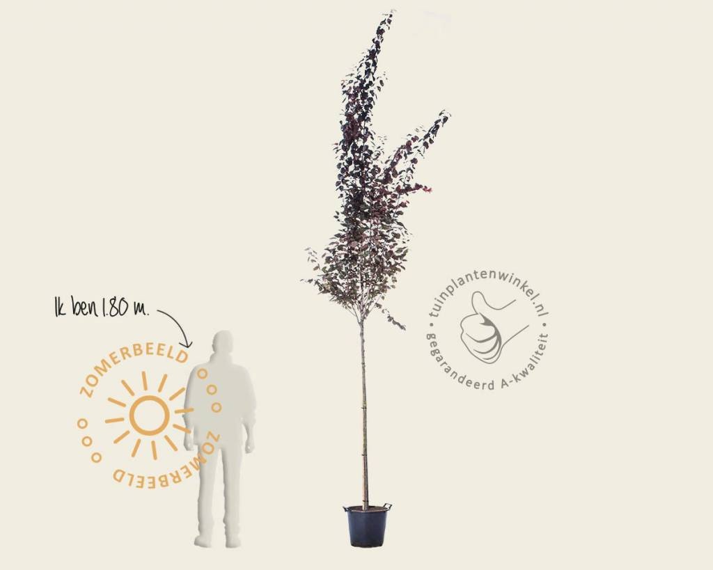Prunus cerasifera 'Nigra' valt op door zijn donkerrode blad. De Sierkers of Sierpruim heeft in het voorjaar kleine, lichtroze bloemen. De boom krijgt een mooie, ronde kroon. Sporadisch komen er vruchtjes aan. De twijgen van de Kerspruim of Sierpruim zijn donkerrood. In de winter geven die een mooi contrast met de andere tuinplanten.