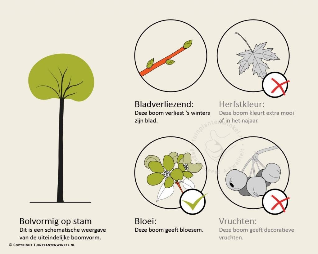 Bomen van tuinplantenwinkel.nl kunt u jaarrond planten. Dit kan omdat we al onze bomen in pot leveren. Aanplanten in de herfst, winter, lente én zomer is dus altijd mogelijk, met aangroeigarantie!