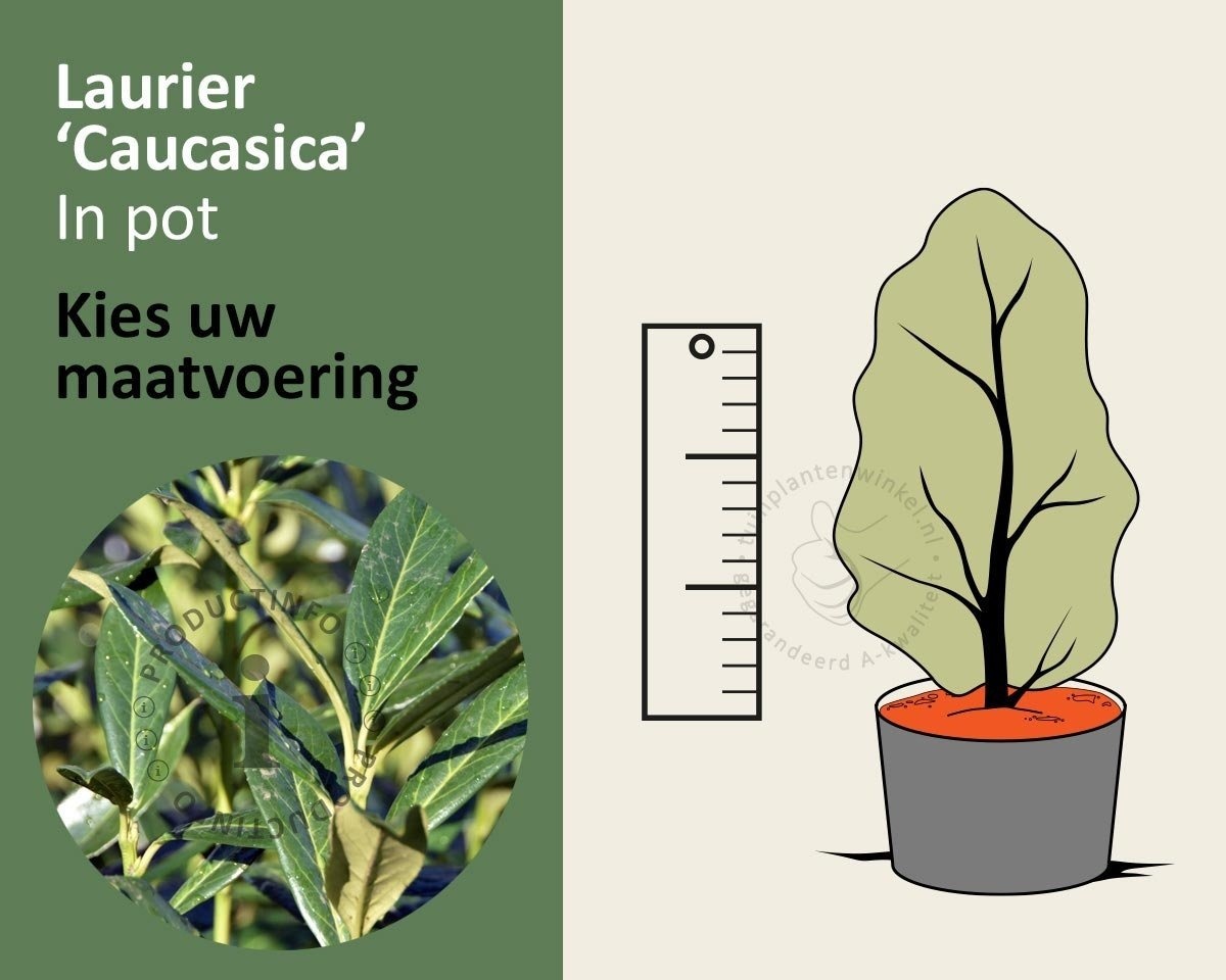 De Prunus laurocerasus 'Caucasica' is een snelgroeiende, groenblijvende tuinplant die uitstekend geschikt is voor een afscheiding, maar is ook solitair aangeplant een mooie aanwinst voor de tuin. In mei/juni, en soms al in januari, bloeit deze Laurier met rechtopstaande trossen van mooie, witte bloemen. In augustus verschijnen giftige, bijna zwarte bessen. De Prunus laurocerasus 'Caucasica' heeft een wat smallere groeiwijze dan de 'Rotundifolia'. De bladeren zijn langwerpig van vorm en donkergroen van kleur.