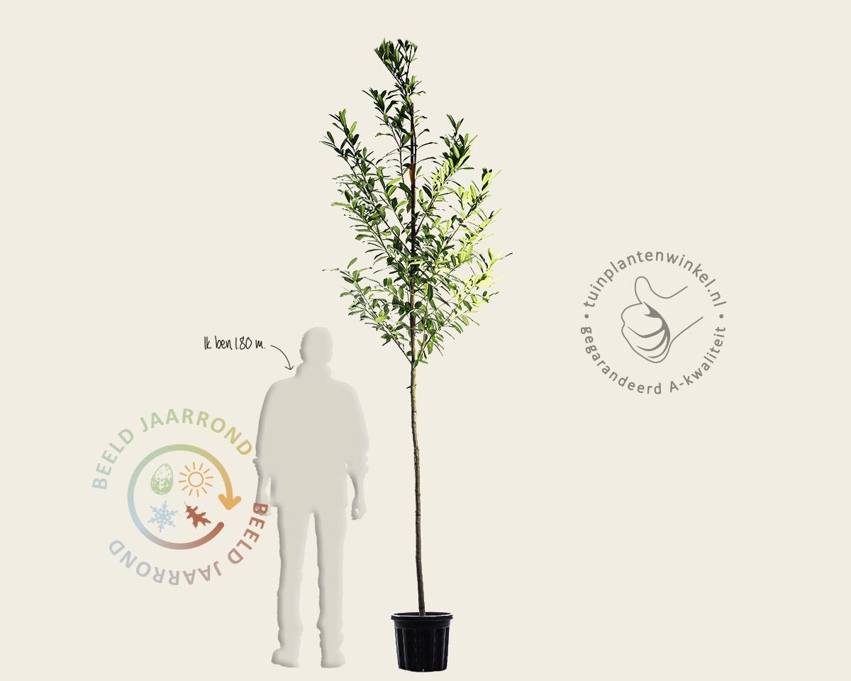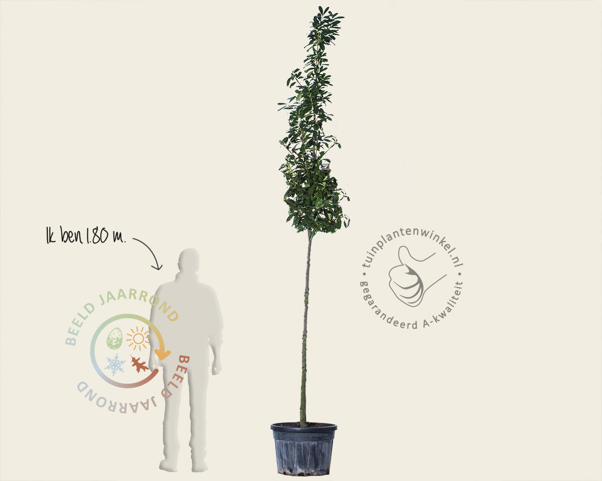 Prunus laurocerasus 'Caucasica' is een groenblijvende boom, die uitstekend geschikt is voor privacy te verkrijgen als afscheiding, maar is zeker ook, solitair aangeplant, een aanwinst voor de tuin. In mei/juni, en soms al in januari, bloeit de Laurier met rechtopstaande trossen van mooie, witte bloemen. In augustus verschijnen giftige, bijna zwarte bessen. Prunus lauroceracus 'Caucasica' heeft een wat smallere groeiwijze dan de 'Novita'. De bladeren zijn langwerpig van vorm en donkergroen van kleur.