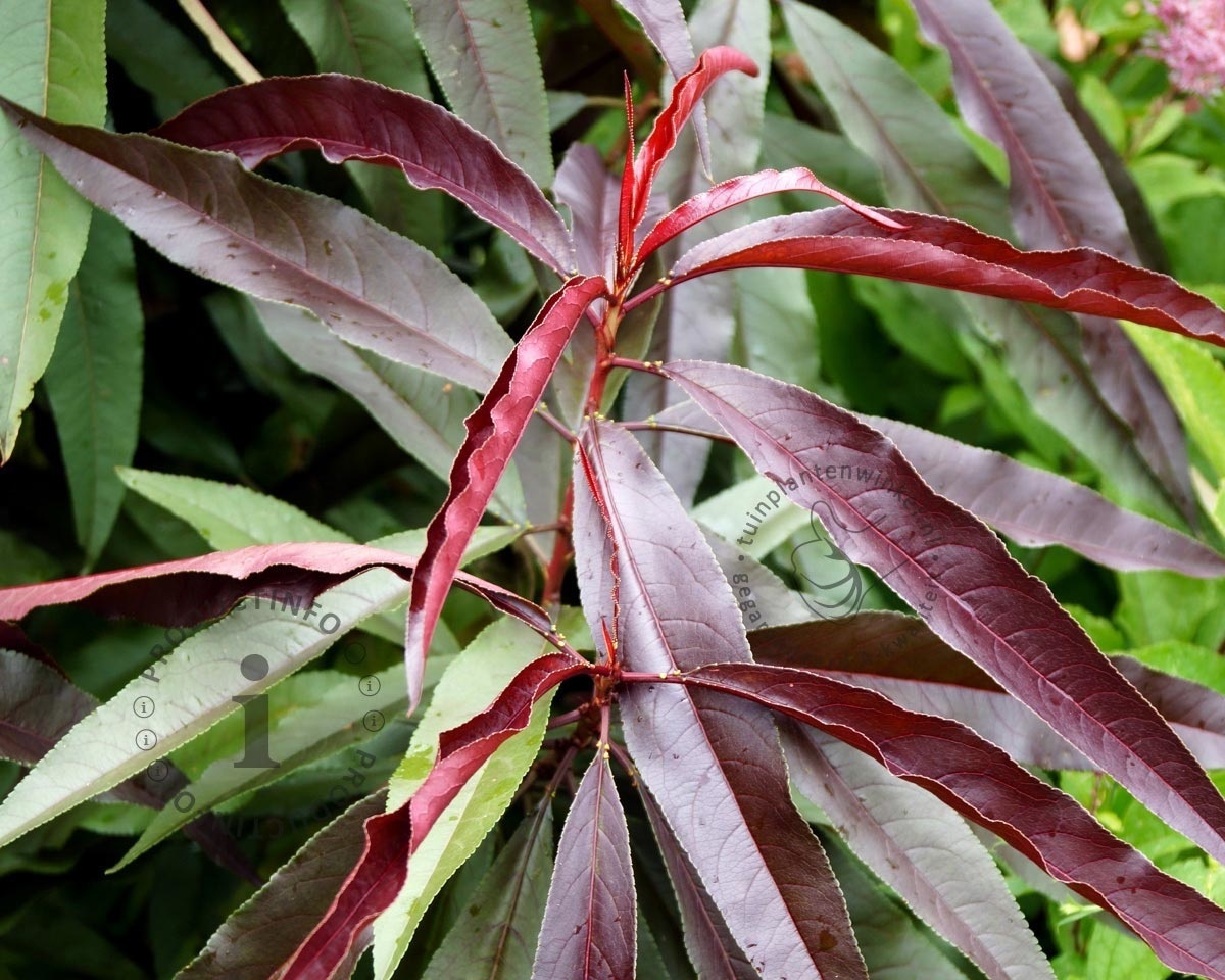 Prunus persica 'Rubira' mini of Roodbladige perzik