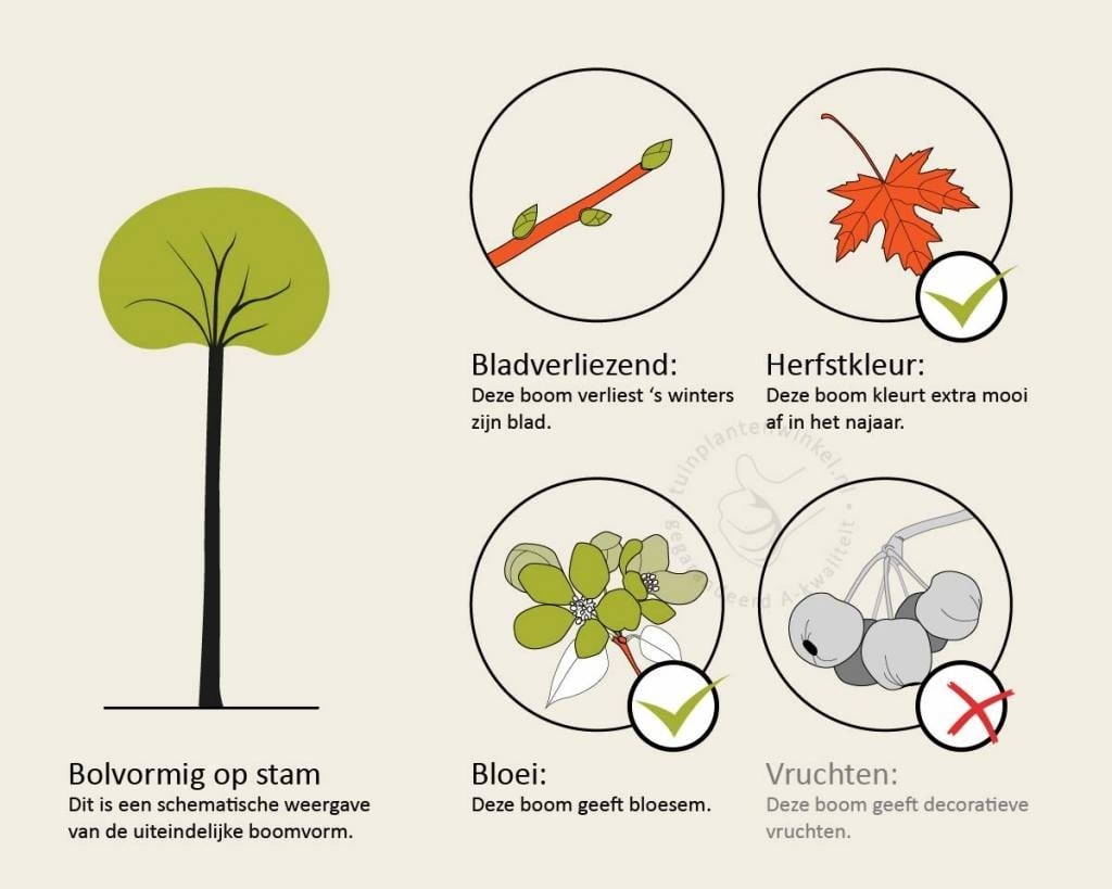 Bomen van tuinplantenwinkel.nl kunt u jaarrond planten. Dit kan omdat we al onze bomen in pot leveren. Aanplanten in de herfst, winter, lente én zomer is dus altijd mogelijk, met aangroeigarantie!
