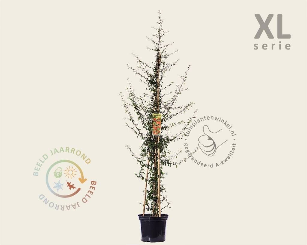 De Vuurdoorn geeft veel sierwaarde. In het voorjaar heeft deze tuinplant roomwitte bloemen en in de zomer en het najaar massa's kleurige bessen. Merels en Lijsters zijn hier dol op! Vuurdoorn kan tegen een muur of hekwerk groeien. Hij heeft ondersteuning nodig om te klimmen. De Pyracantha kan ook als losse of strak geknipte solitair gezet worden. Deze tuinplant is goed winterhard en behoudt in normale winters zijn bladeren.