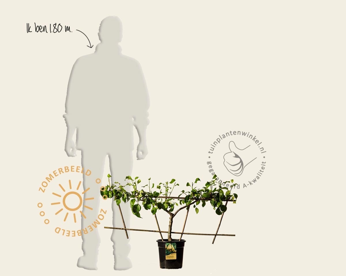 Deze Step-over peer moet gesnoeid worden om haar vorm te behouden. De hoofdtak wordt niet gesnoeid. De zijscheuten kunt u het beste inkorten tot ongeveer 5 à 10 centimeter. Op deze scheuten vormt de boom bloesemknoppen en uiteindelijk vruchten.