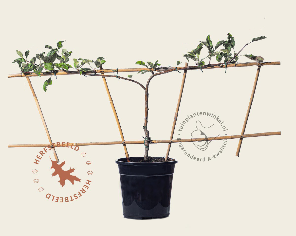Hoe leuk is dit!? Deze bomen zijn zo laag dat u er overheen kunt stappen. De Engelse benaming Step-over wordt het meest gebruikt voor dit type fruitboom. Ze worden vooral gebruikt in moes- en groentetuinen maar kunnen ook in de border worden aangeplant. Meestal functioneren ze als een lage afscheiding tussen het gazon en de border of tussen groentebedden.