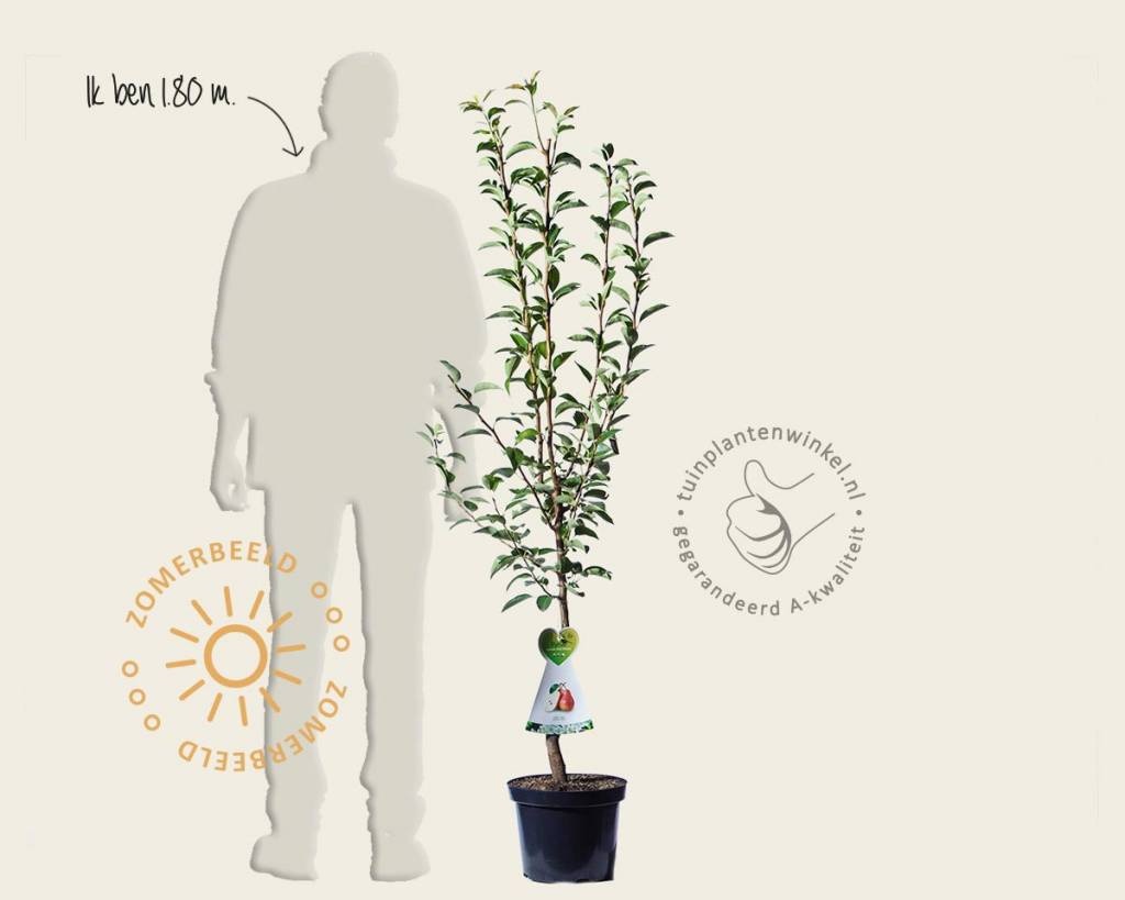 Pyrus communis 'Zoete Brederode' - laagstam is makkelijk te snoeien. Deze fruitboom is geënt op een traag groeiende onderstam, waardoor de boom trager groeit dan normaal. De beste fruitopbrengst verkrijgt u door veelvuldig te snoeien, zodat de boom licht en luchtig blijft, met een beperkt aantal hoofdtakken. De hoogte van de tuinplant bepaalt u hierbij zelf. Vanuit de hoofdtakken zullen elk jaar nieuwe takjes omhoog groeien. Knip deze takjes op 10 cm van de hoofdtak terug. De korte takjes van 10 cm die overblijven worden dikker. Hieraan vormen zich in de loop van de jaren de bloemen die kunnen uitgroeien tot vruchten. Het snoeien van een perenboom dient in wintermaanden te gebeuren, bij vorstvrij weer.