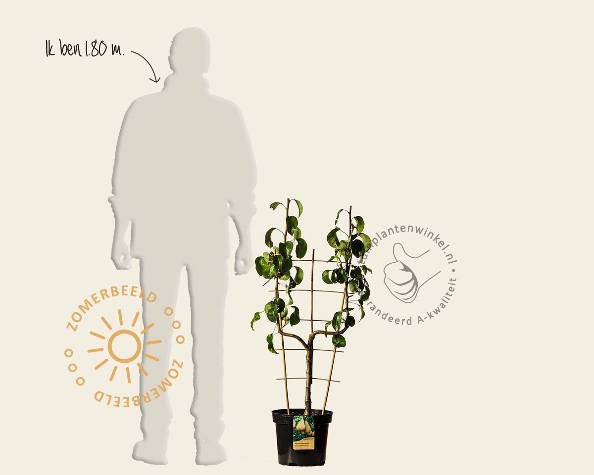 Wanneer er geen ruimte is voor een gewone fruitboom, kan een U vorm gekweekte leifruitboom een goede oplossing zijn om toch te kunnen genieten van eigen gekweekt fruit! Een U-vorm heeft maar weinig ruimte nodig. Deze peer bloeit van april - mei met witte bloemen en is een bladverliezende tuinplant. Pyrus 'Conference' is een goede, zoete handpeer.