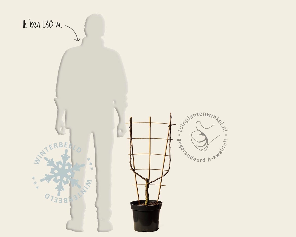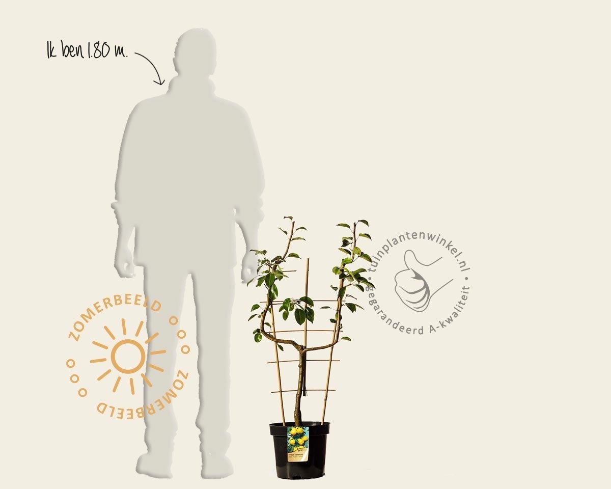 Wanneer er geen ruimte is voor een gewone fruitboom, kan een U-vorm gekweekte leifruitboom een goede oplossing zijn om toch te kunnen genieten van eigen gekweekt fruit! Een U-vorm heeft maar weinig ruimte nodig. Deze Handpeer bloeit van april t/m mei met witte bloemen en daaruit vormen zich zoete peren. Pyrus 'Williams' is een bladverliezende tuinplant.