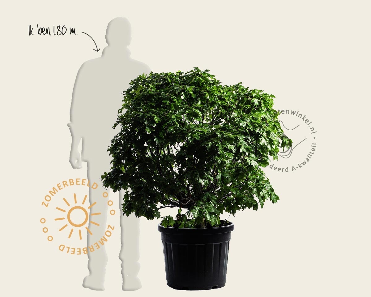 Ja de Quercus palustris 'Green Dwarf' is ook als struikvorm leverbaar. Vaak zie je deze als oude of jonge boom maar deze is als struikvorm ook mooi met een compacte groei. De uiteindelijke hoogte is 1 tot 2 meter. Deze is dus ook te gebruiken in kleine tuinen. De groeisnelheid is niet hoog. de Quercus palustris 'Green Dwarf' is alleen in pot leverbaar dus niet met blote wortel.