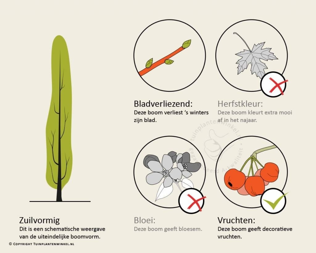 Bomen van tuinplantenwinkel.nl kunt u jaarrond planten. Dit kan omdat we al onze bomen in pot leveren. Aanplanten in de herfst, winter, lente én zomer is dus altijd mogelijk, met aangroeigarantie!