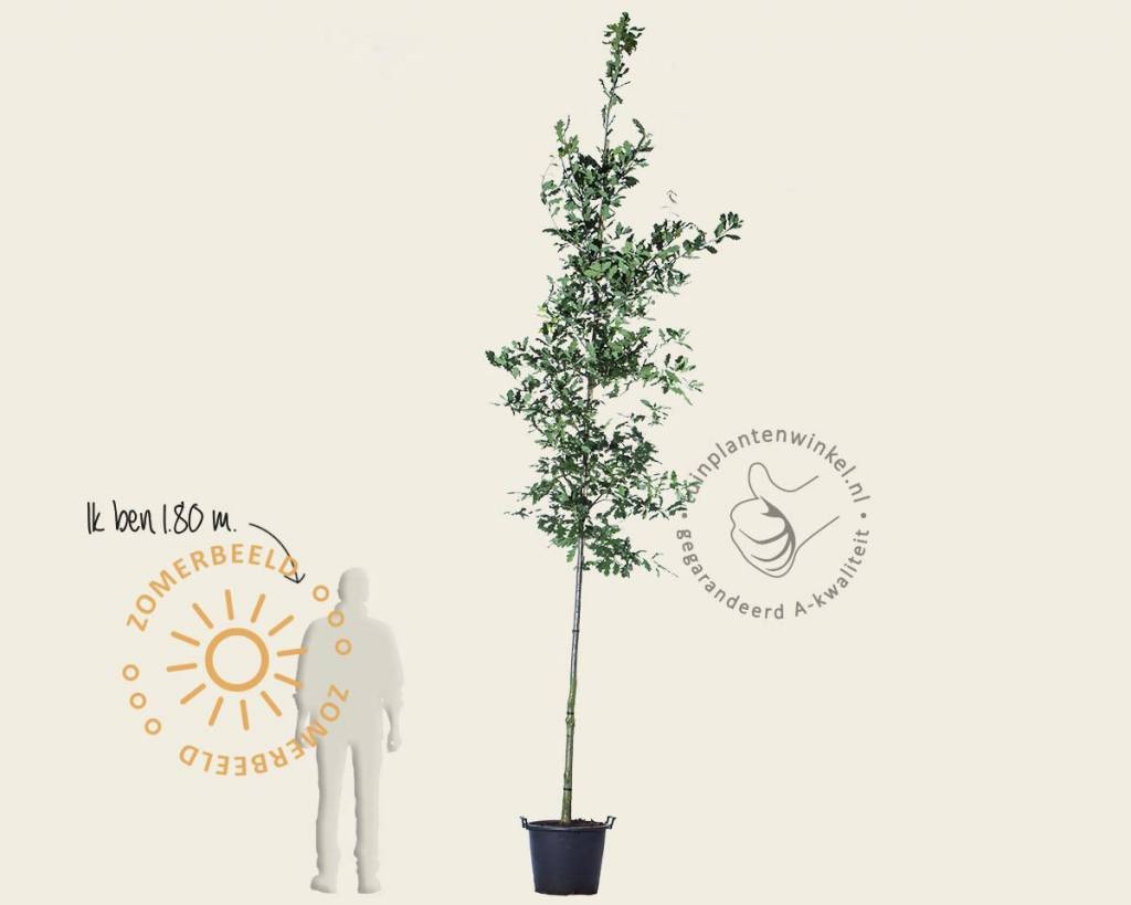 Antwoord: Een jonge boom kan ongeveer 2 cm stamomtrek per jaar maken, dus dat is best veel. Natuurlijk ligt dit wel aan de bepaalde omstandigheden zoals het weer en standplaats. Er zijn verschillend soorten eikenbomen ook in de Quercus robur. Deze is verkrijgbaar als hoogstam boom maar er is ook een smallere variant, namelijk de Quercus robur 'Fastigiate Koster'.