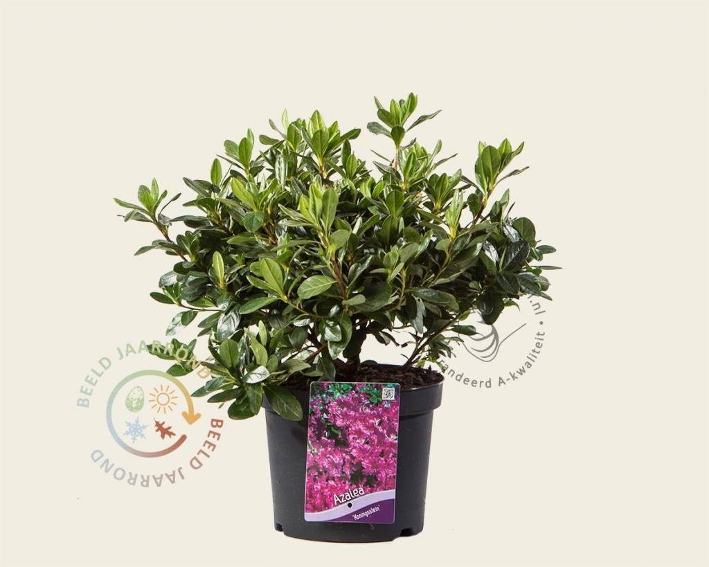 De Japanse azalea is directe familie van de Rhododendrons. Ze groeien langzaam en blijven compact en laag van vorm. Rhododendron Azalea 'Koningsstein' kan meer zon verdragen dan de 'gewone' Rhododendron. De tuinplant bloeit in april - mei met paarse bloemen; hij is vorstbestendig en behoudt in de winter zijn bladeren.