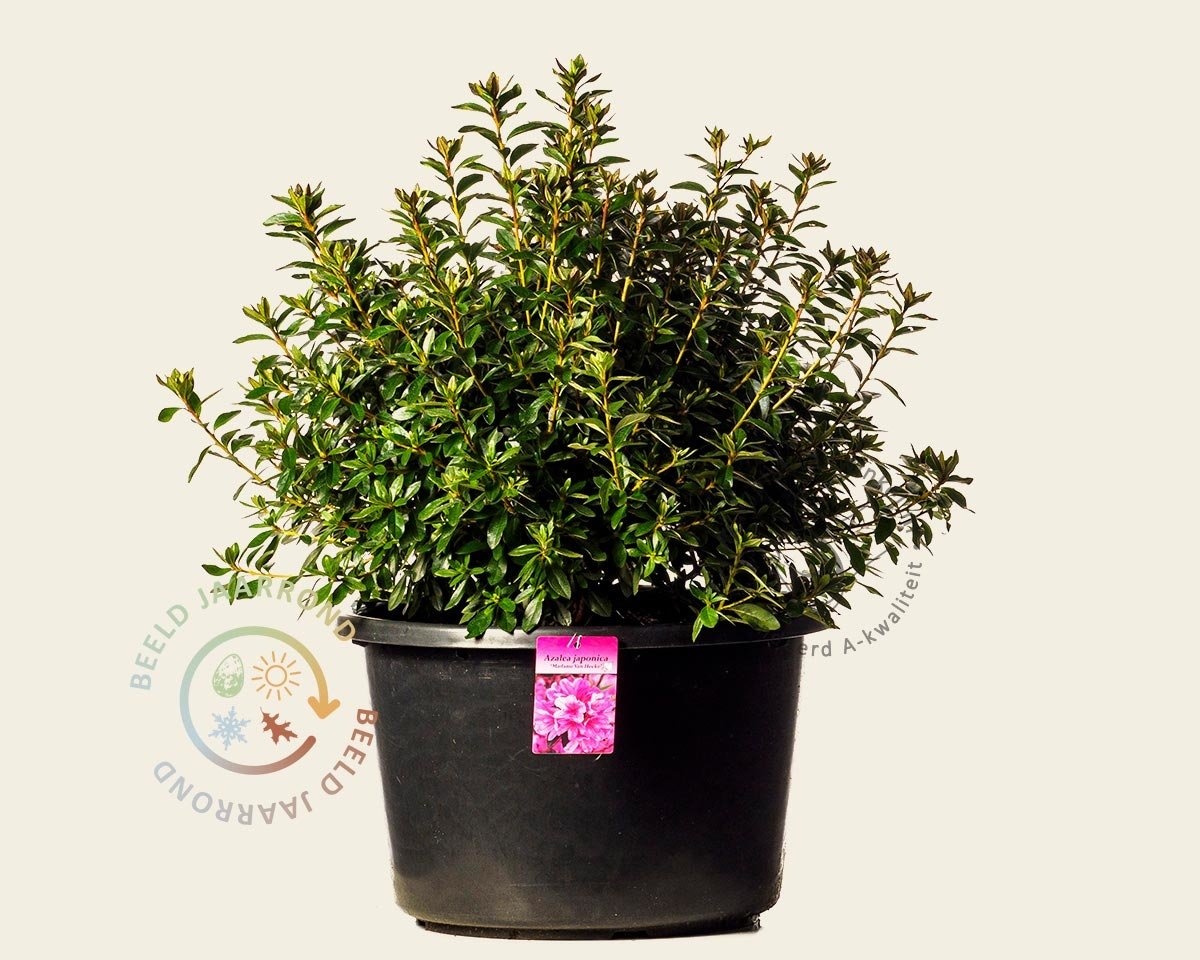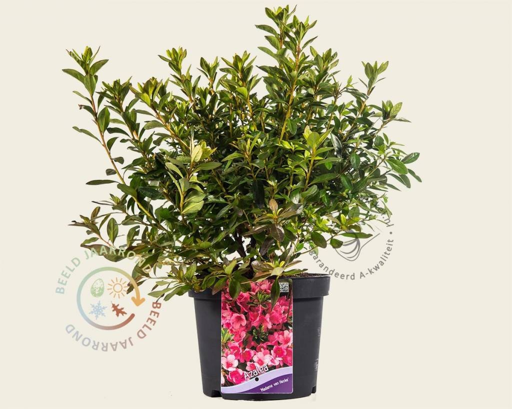 Rhododendron Azalea 'Madame van Hecke' of de Japanse azalea is direct familie van de Rhododendrons. Azalea's groeien langzaam en blijven compact en laag van vorm en kunnen meer zon verdragen dan de 'gewone' Rhododendrons. Rhododendron Azalea 'Madame van Hecke' bloeit in het voorjaar overvloedig met donkerroze-paarse bloemen. De tuinplant is geschikt voor elke border.