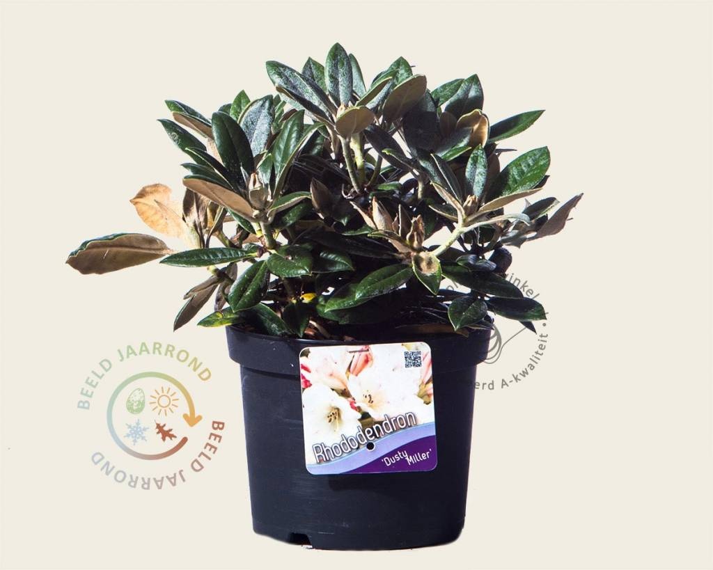 Rhododendron yakushimanum 'Dusty Miller' is een variant uit de yakushimanum collectie. Dit zijn traag groeiende en compacte Rhododendrons met groot blad. Hierdoor zijn ze perfect voor plaatsen waar de uitstraling van een grootbladige Rododendron gewenst is, maar de uiteindelijke grootte niet past in de beschikbare ruimte. Ideaal dus voor in een kleinere tuin om een beschaduwde plek in het voorjaar van kleur te voorzien. De Rhododendron yakushimanum 'Dusty Miller' doet dit in stijl met bloemen in een prachtige lichtroze tint. De naam yakushimanum verwijst naar de herkomst van deze collectie Rhododendrons. Yakushima is een eiland in Japan. De Rhododendron yakushimanum 'Dusty Miller' wordt uiteindelijk ongeveer 125 cm hoog, maar vanwege zijn trage groei, zal het jaren duren voordat hij deze hoogte bereikt heeft.