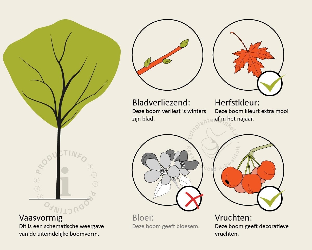 Bomen van Tuinplantenwinkel.nl kunt u jaarrond planten. Dit kan omdat we al onze bomen in pot leveren. Aanplanten in de herfst, winter, lente én zomer is dus altijd mogelijk, met aangroeigarantie!