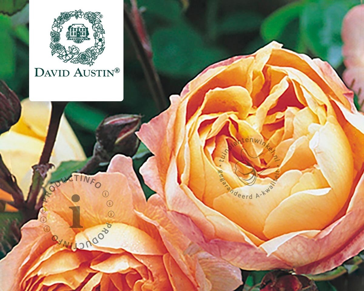 Wat een kleur en wat een geur! Deze Engelse roos is een erg bijzondere verschijning met zijn abrikoos-oranje bloembladeren. Het kan ook niet anders dat deze roos uit de stal van David Austin komt. Deze Engelse veredelaar vergaarde zijn faam door de introductie van vaak sterk gevulde, sterk geurende en doorbloeiende rozen. De Rosa 'Lady Emma Hamilton' is daarop geen uitzondering. Deze Engelse roos bereikt in de zomer ongeveer een hoogte van 80 tot 100 centimeter. Snoei uitgebloeide stengels in de zomer terug voor een goede herbloei. In maart kunt u de stamroos terugsnoeien tot ongeveer 15 à 30 centimeter. De roos 'Lady Emma Hamilton' is een selectie van de veredelaar David Austin (David Austin Roses).