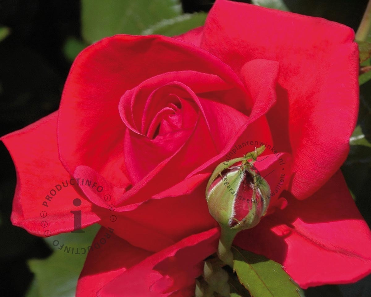 Deze grootbloemige klimroos geeft donkerrode bloemen en de bloei is van juni tot oktober. De bloemen geven een sterke geur af. Zet rozen in de zon of halfschaduw, deze struik zal dan heel de zomer bloem blijven geven.