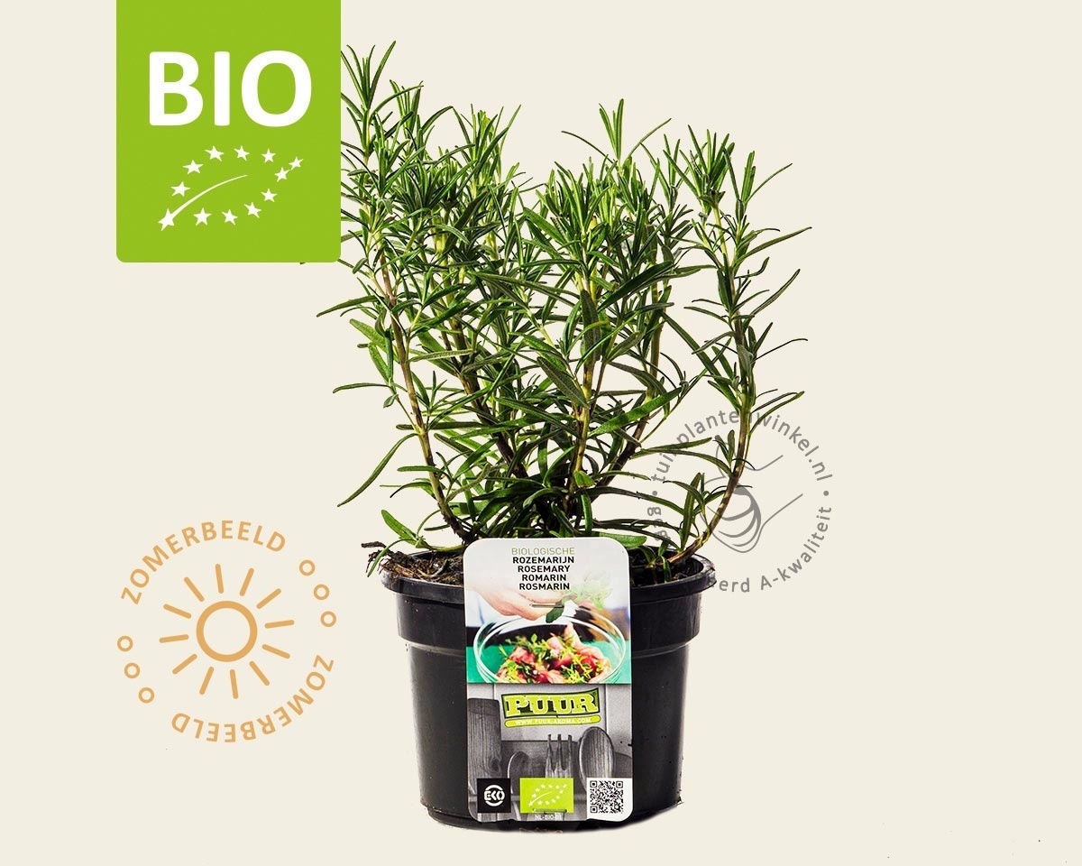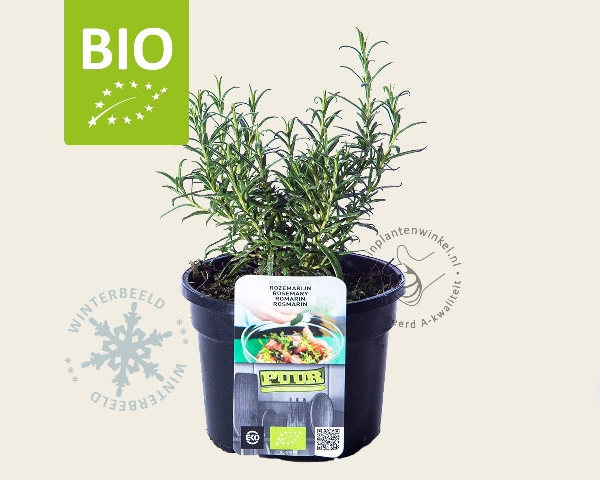 Rosmarinus officinalis Puur is een bladverliezende kruidenplant. Deze Rozemarijn bloeit van mei t/m juli met blauwe bloemen, wordt uiteindelijk ongeveer 60 cm hoog en staat bij voorkeur in de zon.