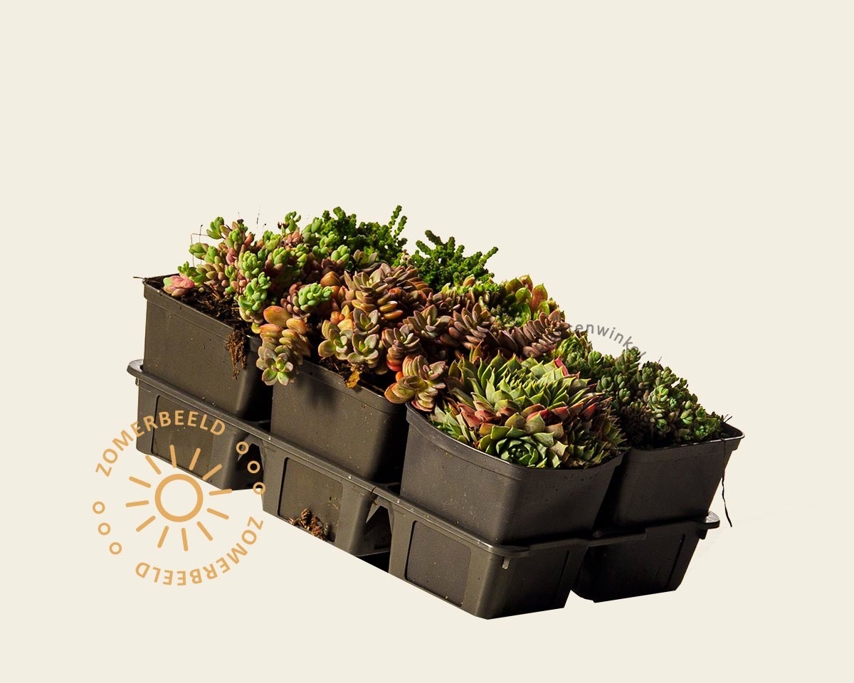 De planten in die samengestelde pakket staan graag droog. Zorg voor een goede drainage zodat de bodem niet te vochtig blijft. Hierdoor kan de plant afsterven. De planten zijn ook geschikt voor aanplant van een groen dak.