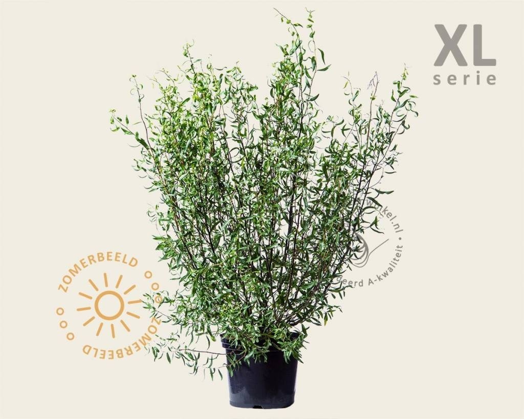 Het is een tuinplant uit onze XL serie. Dat betekent dat u meteen al een flinke struik aan kunt planten. Om het verschil tussen de kleinere en de grotere uitvoering zichtbaar te maken hebben we die bij de afbeeldingen naast elkaar gezet.
