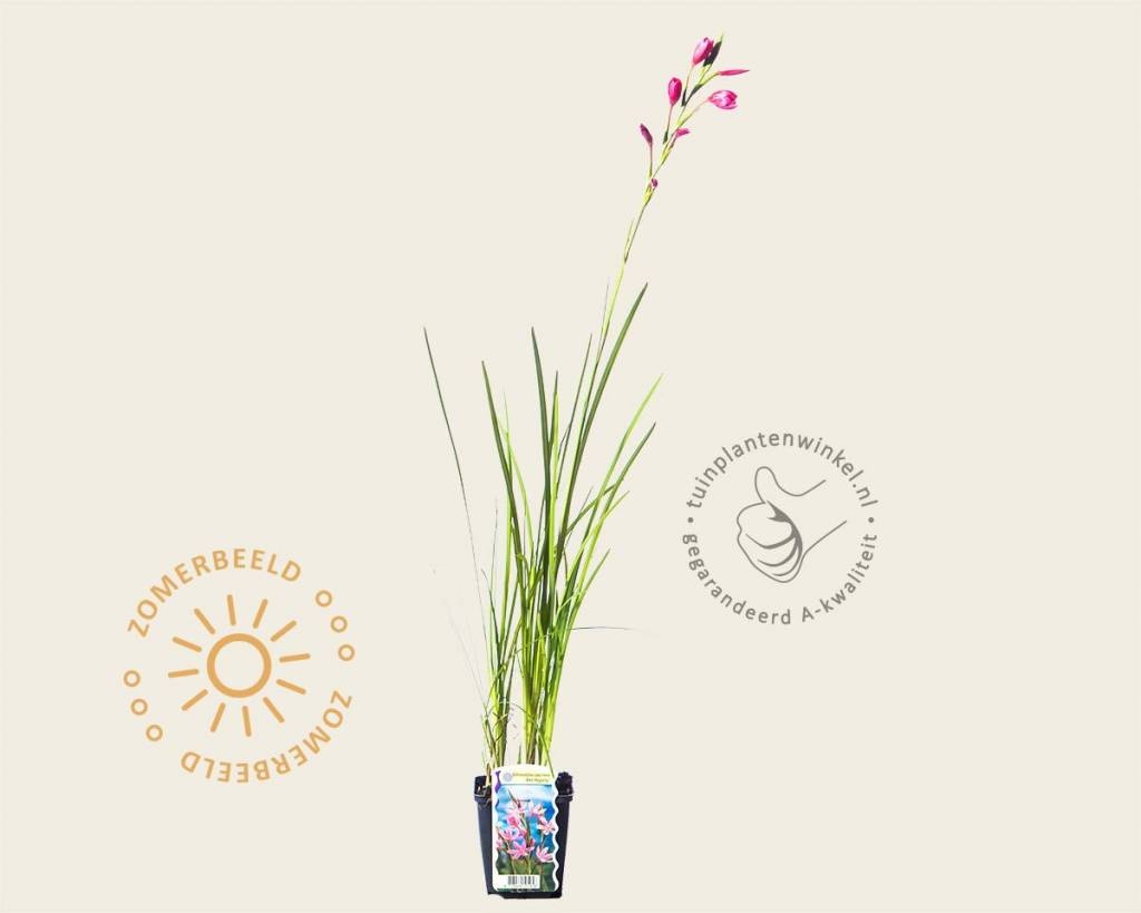 Alhoewel de Moerasgladiool zijn oorsprong in Zuid-Afrika heeft, is de Schizostylis coccinea 'Mrs Hegarty' een cultivar uit Ierland. Vanaf het begin van de herfst komen er bloemen aan deze tuinplant. Omdat de meeste oever- en waterplanten dan al op hun retour zijn, is Schizostylis een welkome aanvulling aan de vijverrand. De bladeren van de Moerasgladiool zijn smal en mooi heldergroen van kleur. De Schizostylis coccinea 'Mrs Hegarty' bloeit met roze bloemen. Deze tuinplant is goed te combineren met andere oeverplanten als bijvoorbeeld Zwanenbloem of Iris-soorten. Moerasgladiool wordt ook wel eens Kafferlelie genoemd.