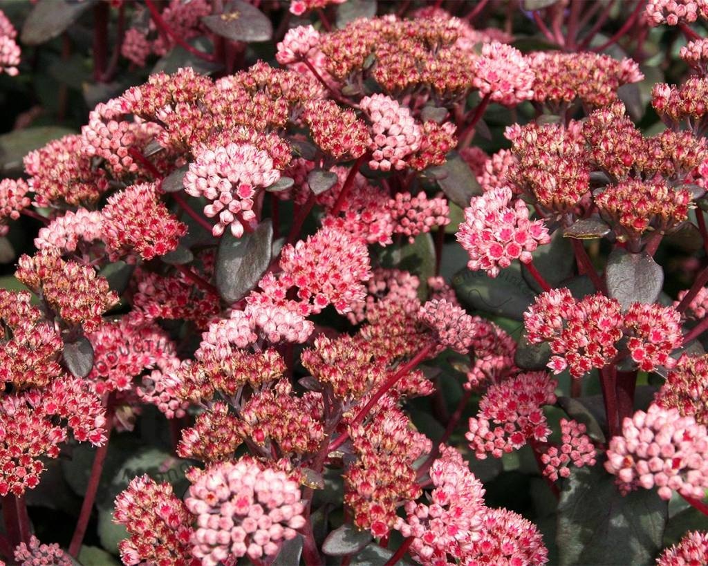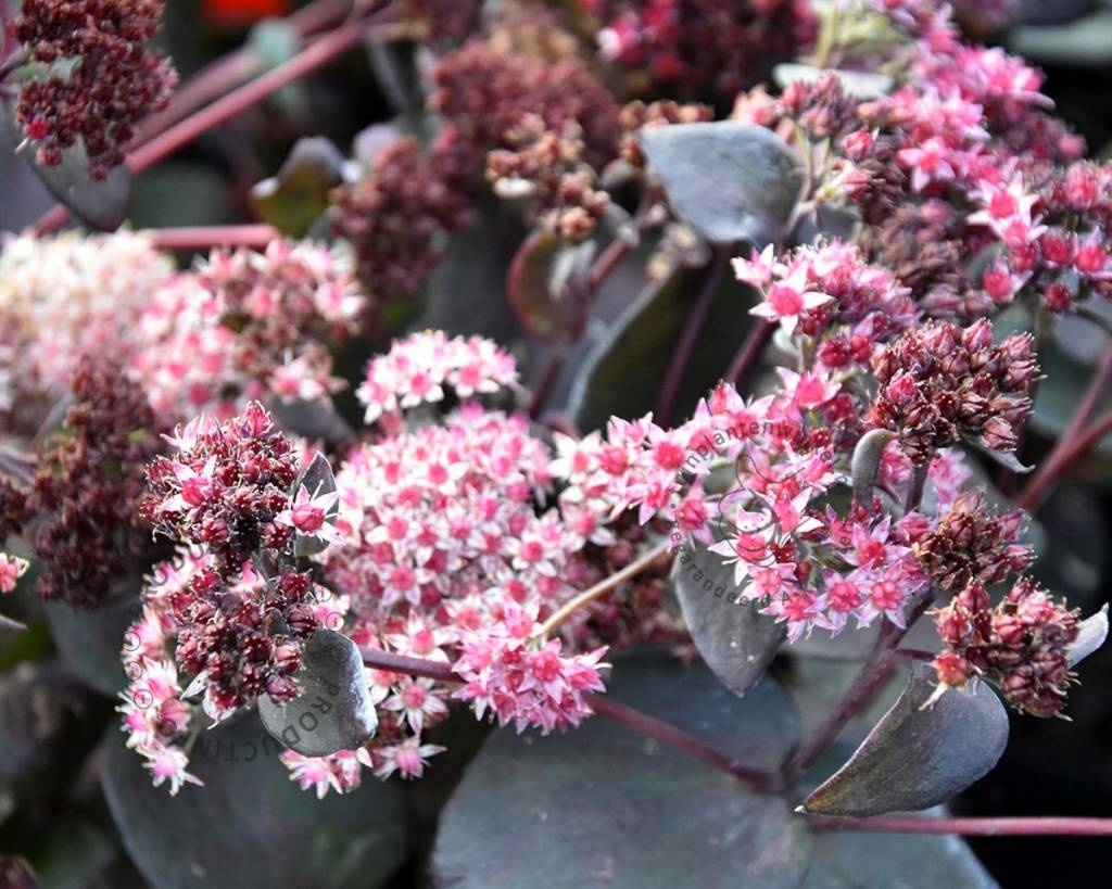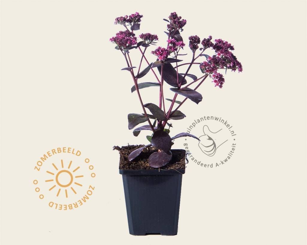 Nee, u hoeft de Sedum 'José Aubergine' niet te gaan proeven; de naam is niet gekozen omdat deze Hemelsleutel naar aubergine smaakt... Het is de kleur van het blad dat gelijkenis toont met de kleur van deze vrucht! De felroze bloeiende Hemelsleutel is een aanwinst voor elke border. Sedum 'José Aubergine' heeft prachtig donkerrode bladeren die de bloemkleur nog feller doet lijken. Ander voordeel is dat Hemelsleutel pas aan het einde van de zomer gaat bloeien; een periode waar veel andere borderplanten alweer op hun retour zijn. Niet alleen wij, maar ook de bijen en vlinders zijn hier erg blij mee. Ze zullen volop te vinden zijn op en rondom de Sedum 'José Aubergine'.