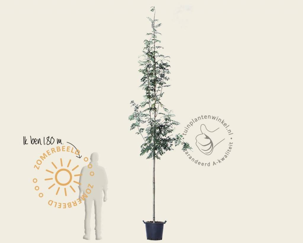 De Lijsterbes, Sorbus aucuparia hoogstam boom kan een volgroeide hoogte krijgen van 5 tot 10 meter. De Sorbus aucuparia is hier in Nederland een inheemse boom die veel voorkomt. De wilde Lijsterbes, Sorbus aucuparia krijgt oranje tot rode bessen die veel vogels aantrekken.