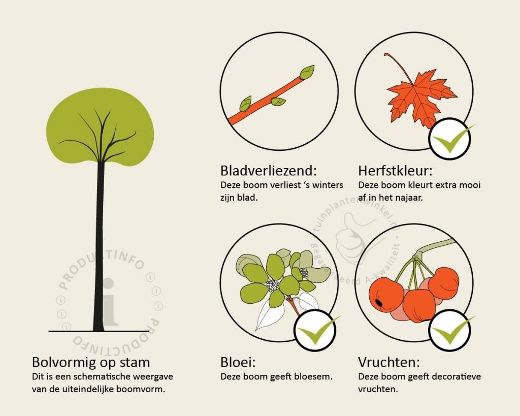 Bomen van tuinplantenwinkel.nl kunt u jaarrond planten. Dit kan omdat we al onze bomen in pot leveren. Aanplanten in de herfst, winter, lente én zomer is dus altijd mogelijk, met aangroeigarantie!